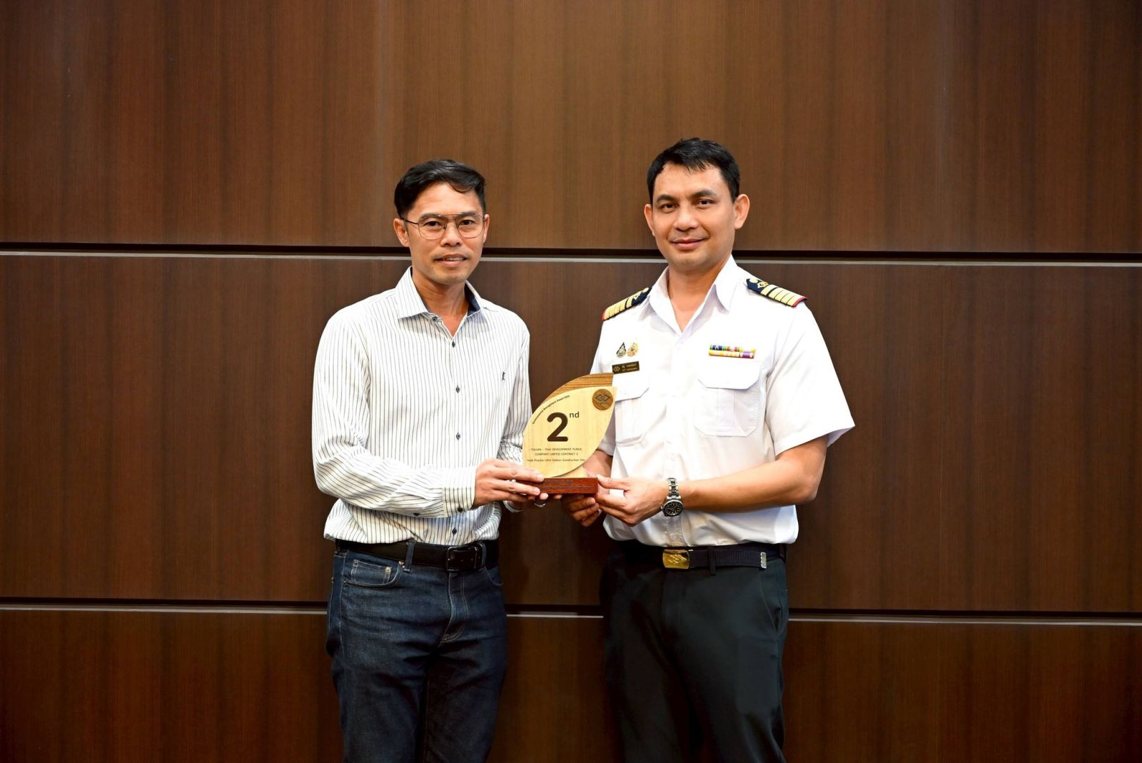 สำหรับผู้รับเหมาก่อสร้างที่ได้รับรางวัลชมเชย ซึ่งมีสัญลักษณ์ใบไม้สะสม จำนวน 23 ใบ ได้แก่ บริษัท อิตาเลียนไทย ดีเวล๊อปเมนต์ จำกัด (มหาชน) สัญญาที่ 5 จำนวน 4 พื้นที่ ได้แก่ สถานีดาวคะนอง สถานีบางปะกอก สถานีแยกประชาอุทิศ และทางวิ่ง Zone 3