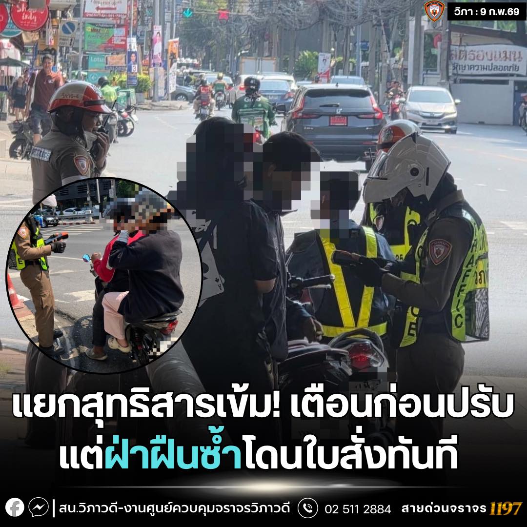 วันนี้ (11 กุมภาพันธ์ 2569) พล.ต.อ.สำราญ นวลมา รองผู้บัญชาการตำรวจแห่งชาติ เปิดเผยว่า ตามนโยบายการบริหารราชการสำนักงานตำรวจแห่งชาติ ประจำปีงบประมาณ พ.ศ 2569 ของ พล.ต.อ.กิตติ์รัฐ พันธุ์เพ็ชร์ ผู้บัญชาการตำรวจแห่งชาติ “6 เร่งรัด” ข้อ 5. กวดขัน เสริมสร้างวินัยจราจร นั้น ขณะนี้สำนักงานตำรวจแห่งชาติได้มีมาตรการ “เตือนก่อนปรับ” โดยให้เจ้าหน้าที่ตำรวจจราจรทั่วประเทศดำเนินการว่ากล่าวตักเตือนประชาชนก่อนออกใบสั่งทุกข้อหาที่เจ้าพนักงานจราจรมีอำนาจปรับ ผ่านระบบบริหารจัดการใบสั่งจราจร Police Ticket management หรือ PTM และให้มีการประชาสัมพันธ์ประชาชนเกี่ยวกับการสร้างเสริมและเคารพกฎจราจร โดยไม่กระทำผิดกฎหมายจราจร โดยมีระยะเวลาดำเนินการระหว่างเดือนมกราคม ถึงมีนาคม 2569