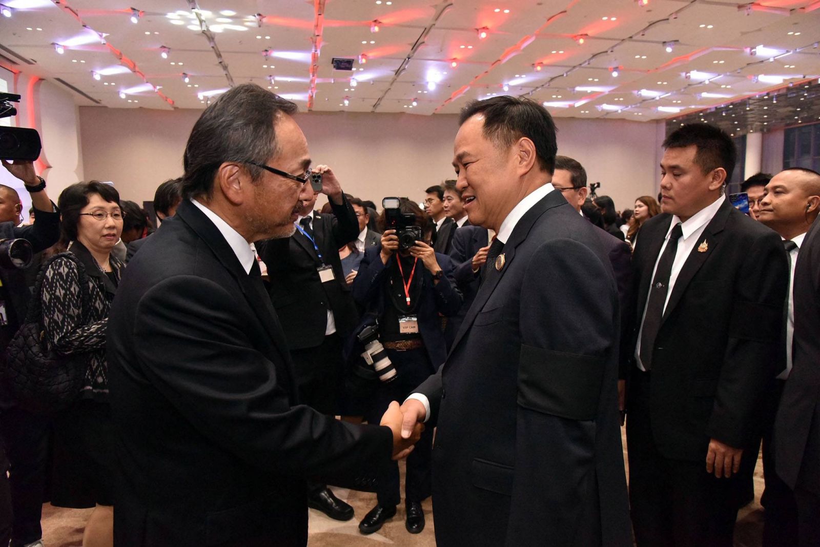 วันที่ 12 กุมภาพันธ์ 2569 ณ ห้องเพลนารีฮอลล์ ศูนย์การประชุมแห่งชาติสิริกิติ์ เขตคลองเตย กรุงเทพฯ นายอนุทิน ชาญวีรกูล นายกรัฐมนตรีและรัฐมนตรีว่าการกระทรวงมหาดไทย เข้าร่วมงานเลี้ยงรับรองเนื่องในโอกาสวันคล้ายวันพระราชสมภพของสมเด็จพระจักรพรรดิแห่งญี่ปุ่น โดยมีนายโอตากะ มาซาโตะ (H.E. Mr. OTAKA Masato) เอกอัครราชทูตญี่ปุ่นประจำประเทศไทยให้การต้อนรับ