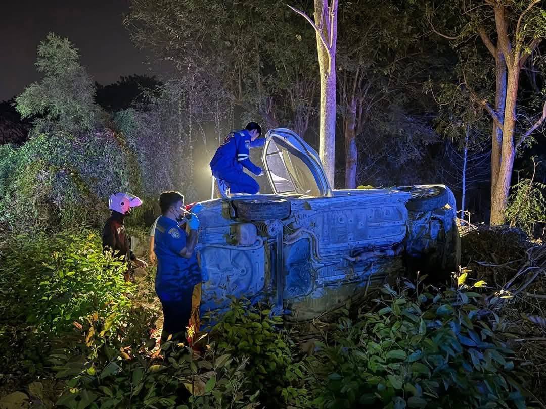 เวลา 21.30 น. วันที่ 12 กุมภาพันธ์ 2569 อาสาสมัครมูลนิธิขุนรัตนาวุธ ได้รับแจ้งว่า มีอุบัติเหตุรถนั่งส่วนบุคคลชนต้นไม้ข้างทาง และมีผู้บาดเจ็บ ริมถนนหน้าสำนักงานโครงการส่งน้ำพนมทวน ใกล้เคียงสำนักงานชลประทานที่ 13 ในพื้นที่ ม.1 ต.ม่วงชุม อ.ท่าม่วง จ.กาญจนบุรี