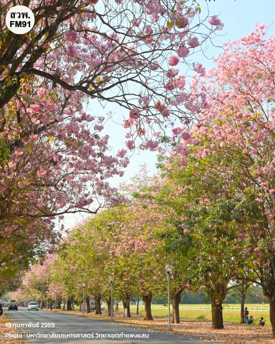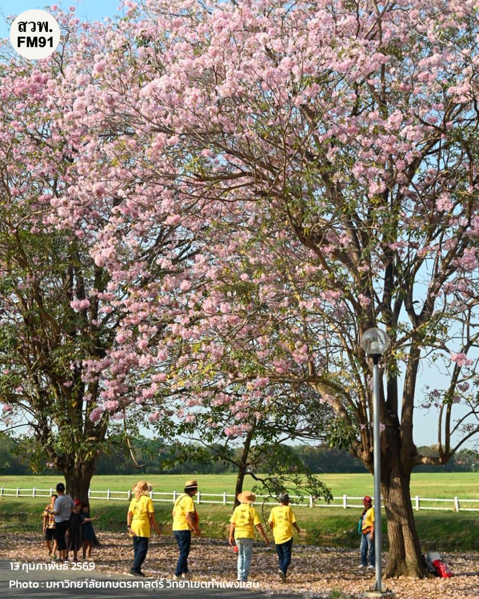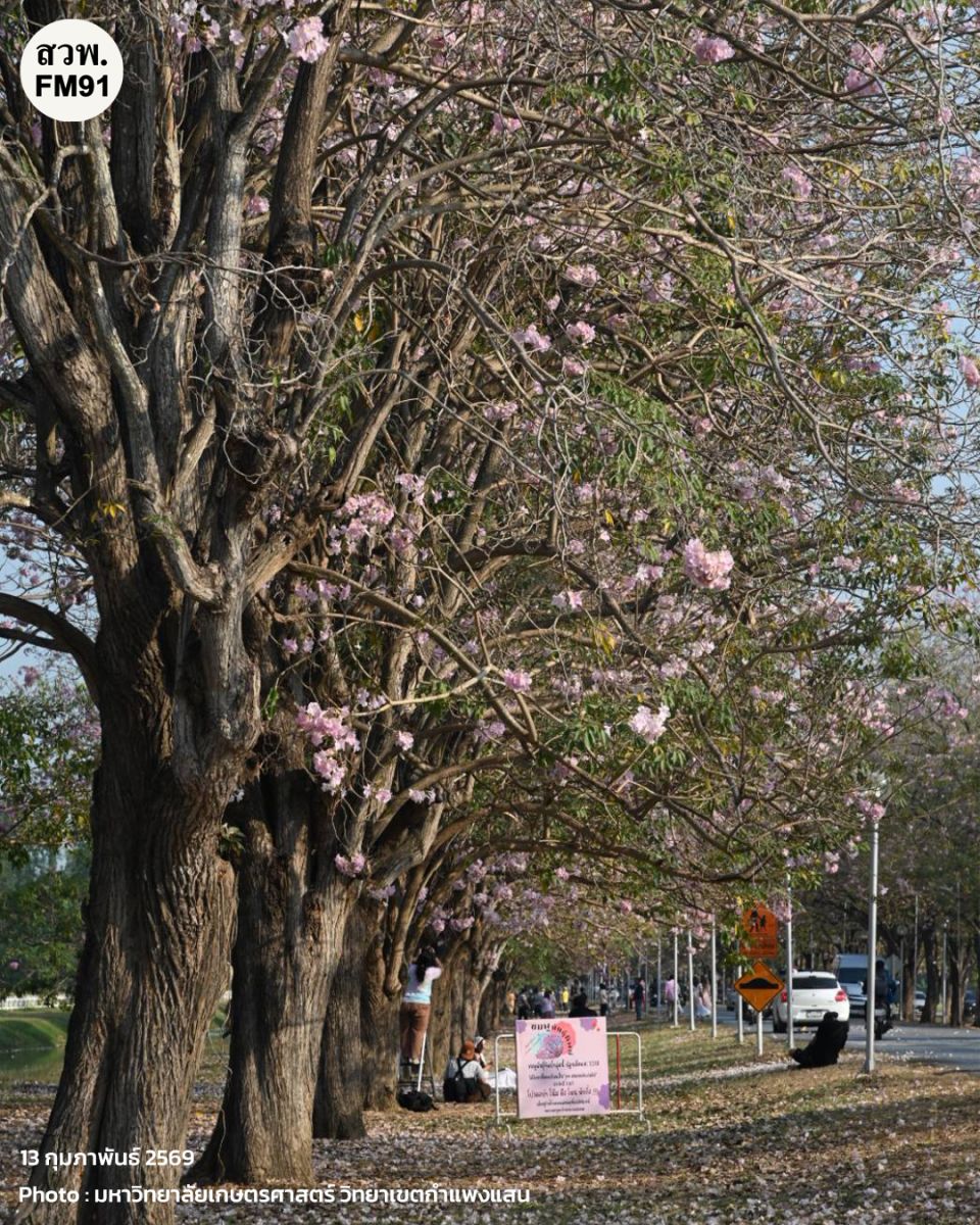 และพรุ่งนี้ (14 ก.พ. 69) จะมีพิธีเปิดเทศกาลชมพูพันธุ์ทิพย์บานสะพรั่ง ประจำปี 2569 ในเวลา 15.00 น. เป็นต้นไป ณ บริเวณถนนวัฒนาเสถียรสวัสดิ์ ด้านหน้าโรงเรียนสาธิตแห่งมหาวิทยาลัยเกษตรศาสตร์ วิทยาเขตกำแพงแสน ศูนย์วิจัยและพัฒนาการศึกษา