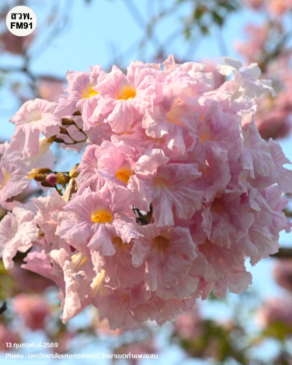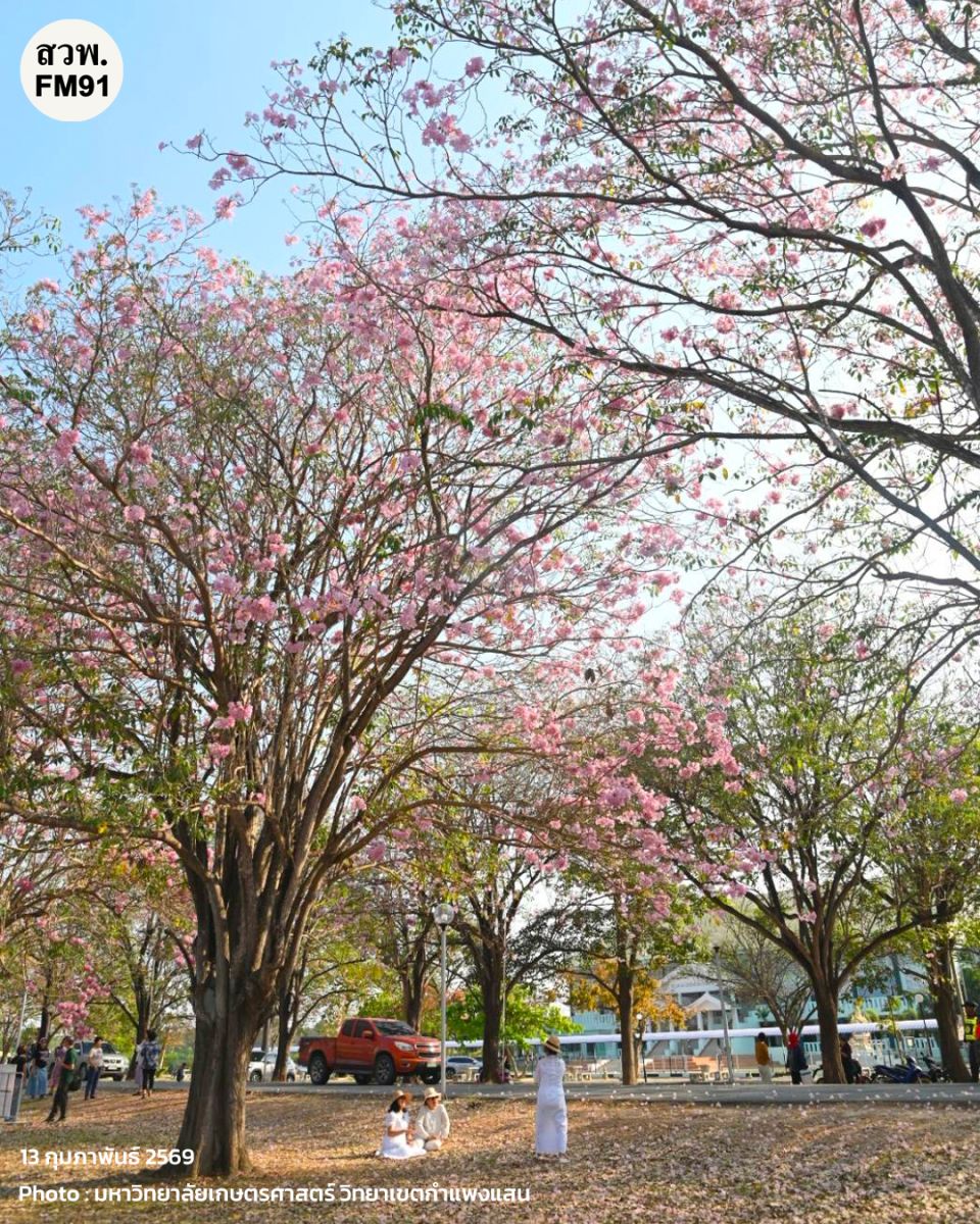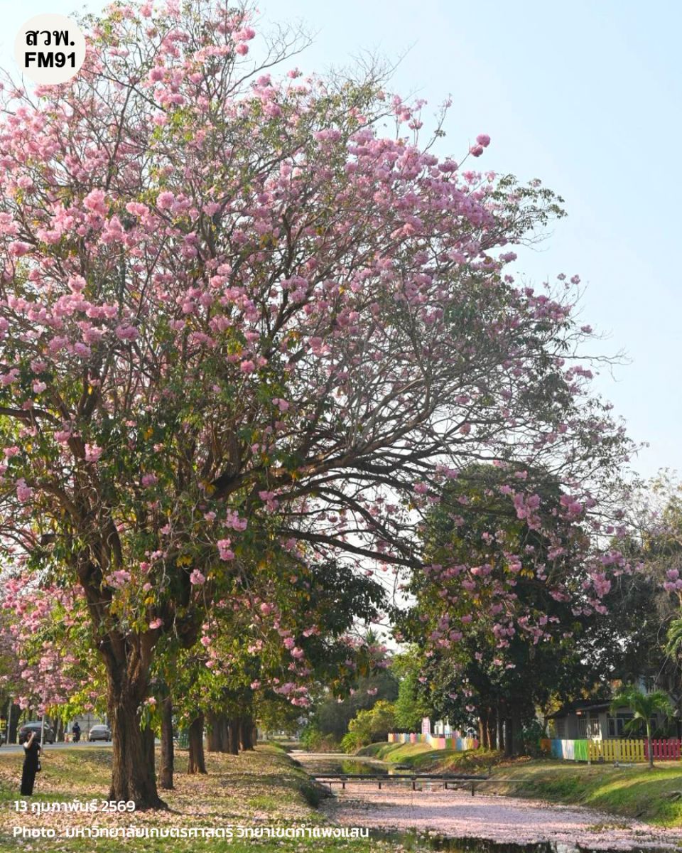 และพรุ่งนี้ (14 ก.พ. 69) จะมีพิธีเปิดเทศกาลชมพูพันธุ์ทิพย์บานสะพรั่ง ประจำปี 2569 ในเวลา 15.00 น. เป็นต้นไป ณ บริเวณถนนวัฒนาเสถียรสวัสดิ์ ด้านหน้าโรงเรียนสาธิตแห่งมหาวิทยาลัยเกษตรศาสตร์ วิทยาเขตกำแพงแสน ศูนย์วิจัยและพัฒนาการศึกษา