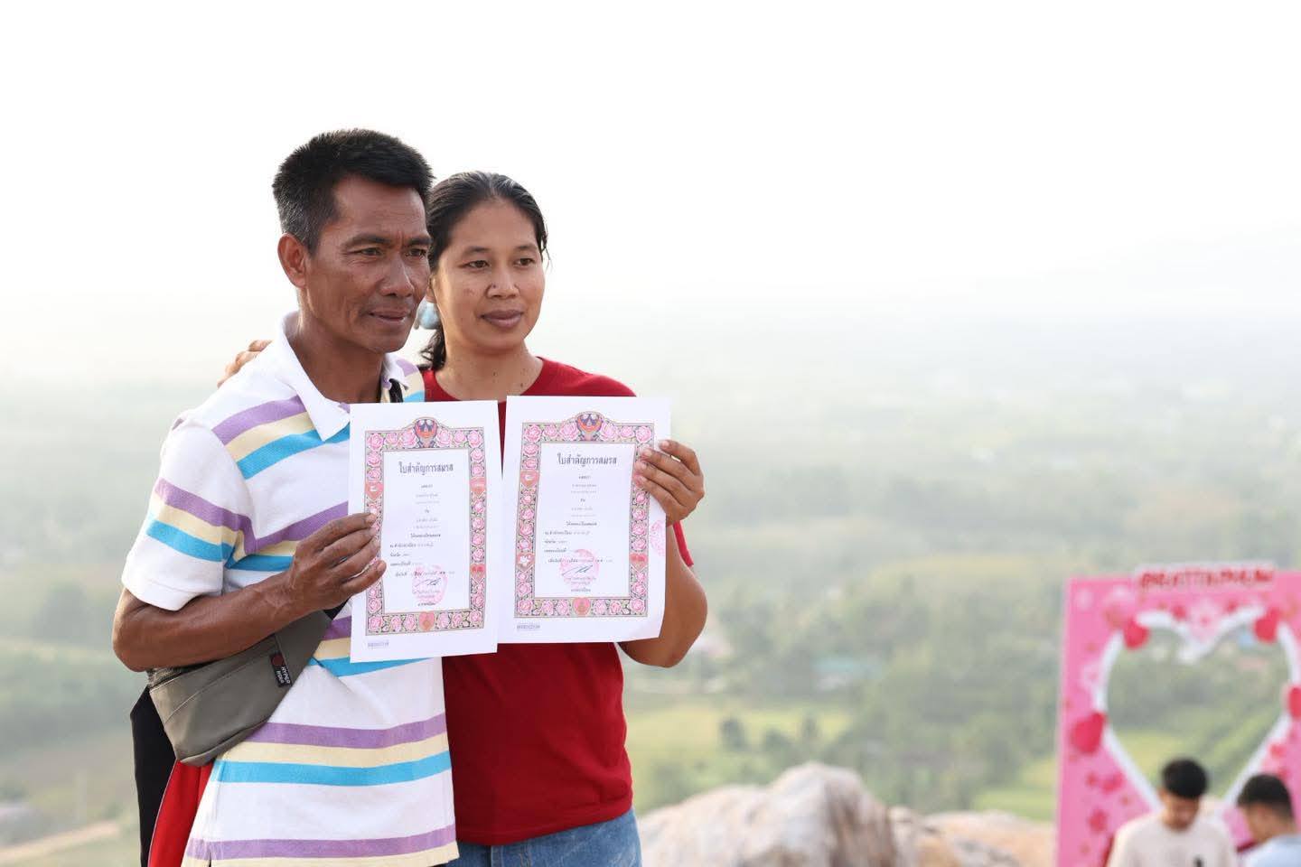 บรรยากาศช่วงเช้ามืดวันนี้ (14 ก.พ. 2569) เต็มไปด้วยความอบอุ่นและโรแมนติก เมื่อ 14 คู่รักทั้งชาย–หญิง และคู่รัก LGBTQ+ จับมือกันเดินเท้าฝ่าเส้นทางสูงชันขึ้นสู่ยอดเขาคูหา ตำบลคูหาใต้ อำเภอรัตภูมิ จังหวัดสงขลา เพื่อจดทะเบียนสมรสเนื่องในวันวาเลนไทน์ ภายใต้สโลแกน “14 กุมภา เขาคูหา มาบอกรัก” ซึ่งจัดต่อเนื่องเป็นปีที่ 3 เส้นทางที่ท้าทายเปรียบเสมือนบทพิสูจน์ความรัก ความอดทน และความตั้งใจที่จะร่วมกันฝ่าฟันอุปสรรคในชีวิตคู่ โดยภายหลังพิธีจดทะเบียน คู่รักยังได้ร่วมกิจกรรม “ปักหลักโค” นำหลักหรือไม้ผูกวัวที่ผ่านพิธีศักดิ์สิทธิ์ปักลงบนผืนดินอย่างแน่นหนา สื่อความหมายถึงการมีหลักมีฐานและครองคู่กันอย่างมั่นคงตลอดไป
