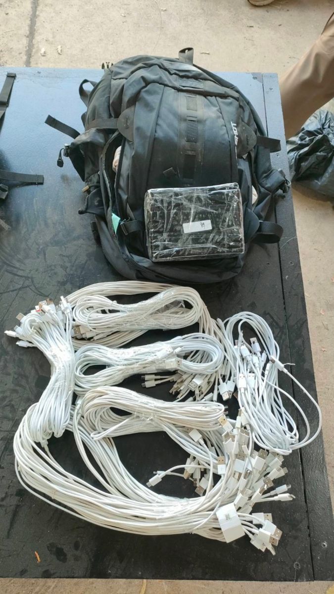 จาการตรวจสอบสิ่งของที่อยู่ภายในรถ พบกระเป๋า 9 ใบ ด้านในแพ็คโทรศัพท์มือถือรวม 283 เครื่อง, สายชาร์จโทรศัพท์ 118 เส้น, คอมพิวเตอร์โน้ตบุ๊ก 2 เครื่อง และอุปกรณ์อื่นๆ ซึ่งเชื่อว่าเป็นของมีไว้หรือเพื่อใช้ในการกระทำความผิด เจ้าหน้าที่จึงทำบันทึกตรวจยึดไว้เพื่อตรวจสอบ และแจ้งข้อกหา พร้อมควบคุมตัวนำส่งพนักงานสอบสวน สภ.ระเบาะไผ่ เพื่อดำเนินคดีตามกฎหมาย