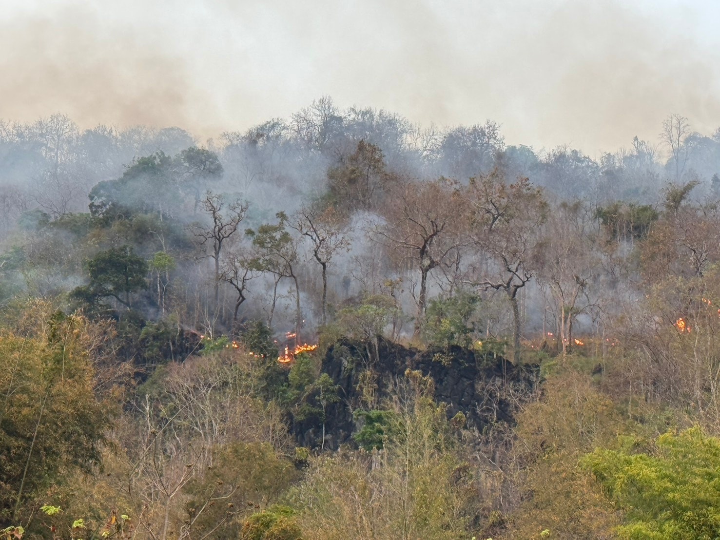 สถานการณ์ไฟป่าในจังหวัดกาญจนบุรี​มีแนวโน้มรุนแรงขึ้น หลังพบจุดความร้อน (Hotspot) กระจายตัวเป็นวงกว้าง ล่าสุด นายสุชาติ ชมกลิ่น รัฐมนตรีว่าการกระทรวงทรัพยากรธรรมชาติและสิ่งแวดล้อม (รมว.ทส.) สั่งการด่วนให้กรมอุทยานแห่งชาติ สัตว์ป่า และพันธุ์พืช ระดมสรรพกำลัง ยุทโธปกรณ์ และกระทรวงทรัพยากรธรรมชาติและสิ่งแวดล้อม ส่งเฮลิคอปเตอร์เข้าสนับสนุนภารกิจดับไฟป่า เพื่อปกป้องพื้นที่ป่าอนุรักษ์ชั้นในอย่างเต็มกำลัง
