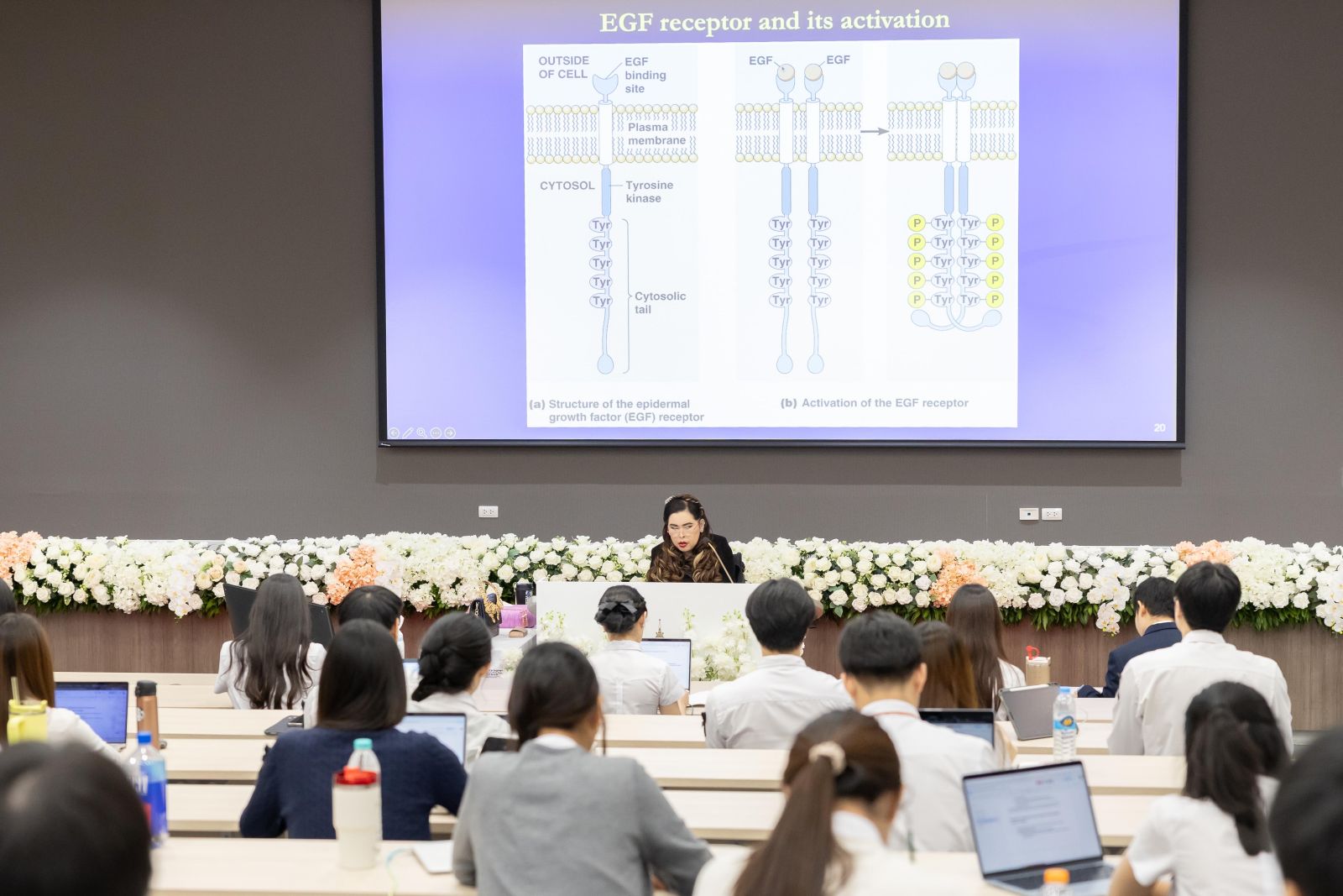 สำหรับครั้งนี้ ทรงบรรยาย ถึงการรักษาโรคมะเร็งที่กำลังก้าวเข้าสู่ยุคใหม่ ด้วยเทคโนโลยีทางชีวการแพทย์ที่ทันสมัย โดยเฉพาะการรักษาแบบ “เซลล์บำบัด” หรือ Cell Therapy เช่น การนำเซลล์ภูมิคุ้มกันของผู้ป่วยมาปรับแต่งพันธุกรรมให้สามารถจดจำและทำลายเซลล์มะเร็งได้ดีขึ้น ซึ่งเรียกกันว่า CAR T-cell therapy ปัจจุบัน ได้รับการยอมรับว่ามีประสิทธิภาพสูงในการรักษามะเร็งของระบบเลือดบางชนิด เช่น มะเร็งเม็ดเลือดขาวและมะเร็งต่อมน้ำเหลือง โดยเฉพาะในผู้ป่วยที่ดื้อต่อการรักษาในวิธีแบบมาตรฐาน อย่างไรก็ตาม การรักษา ด้วยวิธีนี้อาจทำให้เกิดผลข้างเคียงที่รุนแรงได้ เช่น ภาวะการอักเสบทั่วร่างกายจากภูมิคุ้มกันทำงานมากเกินไป และภาวะแทรกซ้อนทางระบบประสาท จึงจำเป็นต้องดูแลอย่างใกล้ชิดในโรงพยาบาลเฉพาะทาง รวมถึง มีค่าใช้จ่ายในการรักษาสูง เนื่องจากกระบวนการผลิตเซลล์ต้องทำเฉพาะบุคคล ภายใต้มาตรฐานความปลอดภัยระดับสูง และต้องมีทีมแพทย์ผู้เชี่ยวชาญดูแลอย่างใกล้ชิด