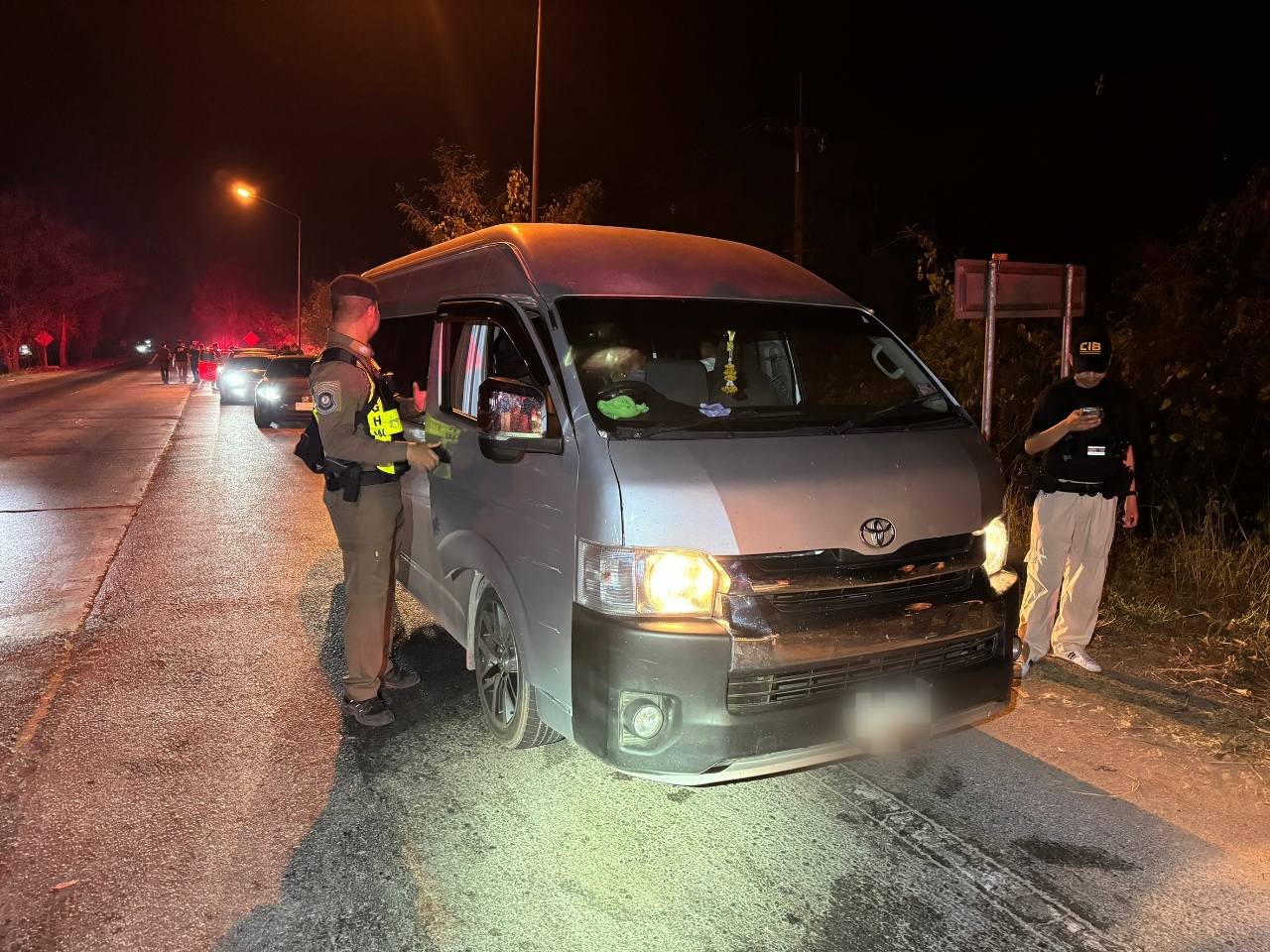 เจ้าหน้าที่เรียกตรวจรถยนต์นั่งส่วนบุคคล พบชายชาวเมียนมาเป็นคนขับ ทำหน้าที่รถนำทาง ส่วนรถตู้พบแรงงานต่างด้าว 17 คน และรถกระบะอีก 9 คน รวม 26 คน ทั้งหมดเป็นชาวเมียนมา ไม่มีหนังสือเดินทางหรือเอกสารแสดงตน