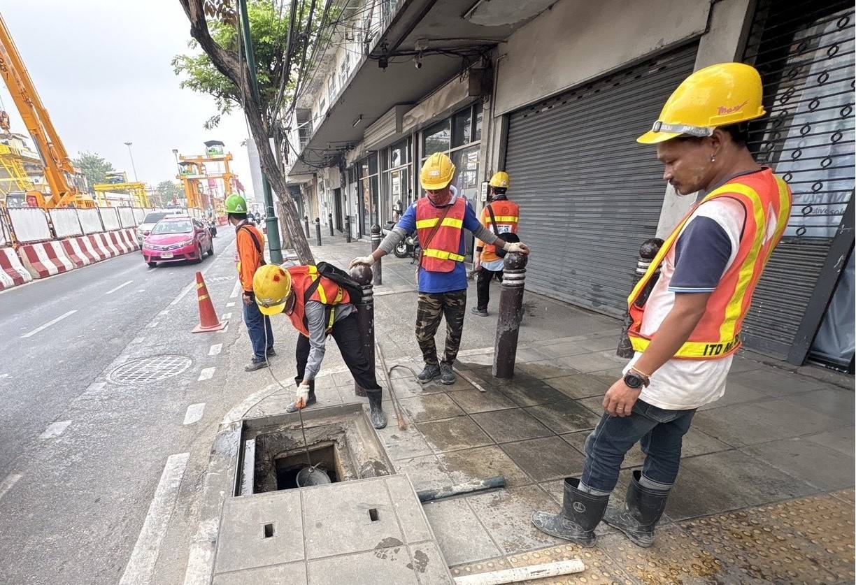 การรถไฟฟ้าขนส่งมวลชนแห่งประเทศไทย (รฟม.) ในฐานะหน่วยงานที่รับผิดชอบดำเนินการก่อสร้าง โครงการรถไฟฟ้าสายสีม่วง ช่วงเตาปูน - ราษฎร์บูรณะ (วงแหวนกาญจนาภิเษก) ได้ติดตามให้ผู้รับจ้างก่อสร้างงานโยธาทุกสัญญา ดำเนินการขุดลอกท่อระบายน้ำและบ่อพัก ตลอดแนวเส้นทางโครงการฯ อย่างต่อเนื่องเป็นประจำทุกเดือน เพื่อป้องกันเศษวัสดุอุดตันในแนวก่อสร้างรถไฟฟ้า เพิ่มประสิทธิภาพการระบายน้ำได้ดีมากยิ่งขึ้น