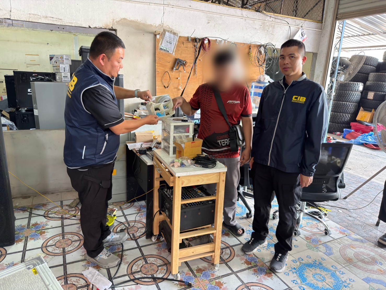 เมื่อวันที่ 28 มกราคม 2569 เจ้าพนักงานตำรวจ กก.3 บก.ปคบ. ได้สืบสวนพบว่า มีสถานที่กักเก็บผลิตภัณฑ์อุตสาหกรรมที่ไม่ได้มาตรฐาน สินค้าประเภทยางรถยนต์ในพื้นที่อำเภอศรีราชา จังหวัดชลบุรี หลังจากได้ตรวจสอบยืนยันข้อมูล จึงได้ลงพื้นที่ไปตรวจสอบ เมื่อเดินทางไปถึงพบสถานที่ดังกล่าวเป็นโกดังมีมีประตูบานเลื่อนปิดทึบไว้ บุคคลทั่วไปไม่สามารถเข้าไปภายในสถานที่ดังกล่าวได้ จึงได้เฝ้าดูพบมีรถกระบะติดโครงเหล็กอยู่ภายด้านในพบว่ามีการขนผลิตภัณฑ์ยางรถยนต์ ขึ้นท้ายกระบะ จึงได้ทำการวางกำลังไว้เฝ้าดู ต่อมารถกระบะคันดังกล่าวได้เดินทางออกมาจากโกดังกักเก็บสินค้า เจ้าพนักงานตำรวจจึงได้ขับรถสะกดรอยติดตามไป ซึ่งรถกระบะคันดังกล่าวได้มุ่งหน้าเข้าพื้นที่ กทม.