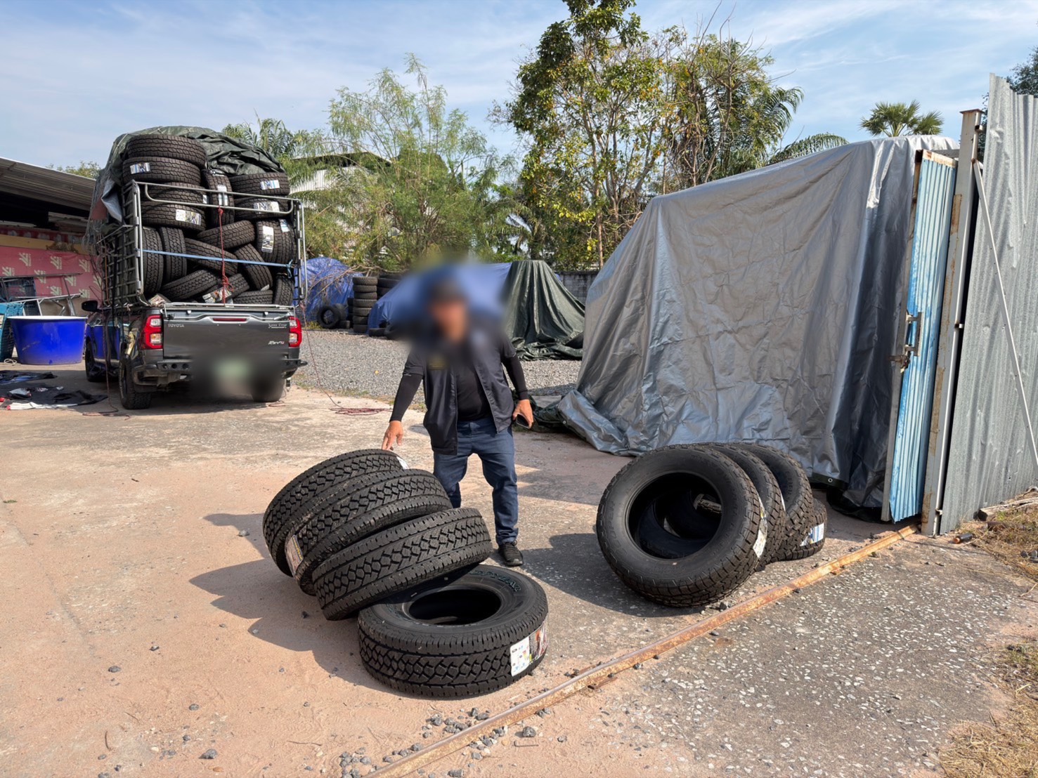 ต่อมา เมื่อช่วงเช้าวันที่ 29 มกราคม 2569 เจ้าพนักงานตำรวจ กก.3 บก.ปคบ. ได้เฝ้าสถานที่เดิมพบมีรถกระบะขนสินค้าอีกคัน กำลังจะนำผลิตภัณฑ์ยางรถยนต์ออกเพื่อนำไปส่งให้ลูกค้า เจ้าพนักงานตำรวจ กก.3 บก.ปคบ. จึงได้ขอทำการตรวจสอบ พบว่า เป็นผลิตภัณฑ์ยางรถยนต์ซึ่งมีลักษณะมีร่องรอยการขูดและตอกปีใหม่เช่นเดียวกัน