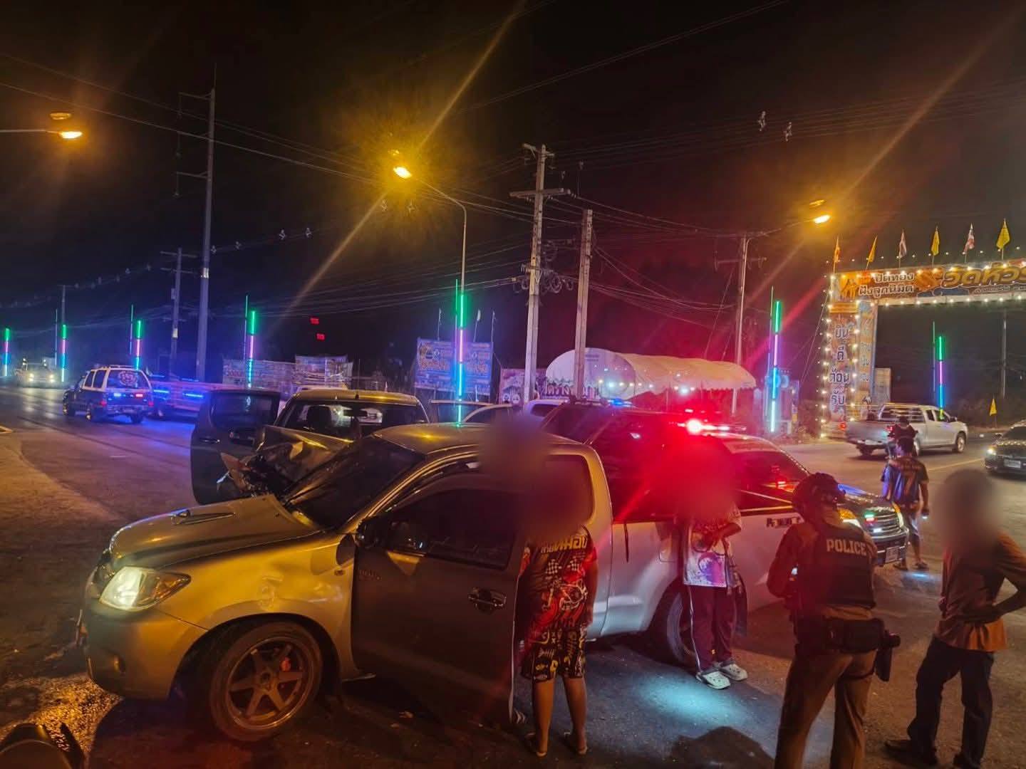 ที่เกิดเหตุ พบรถกระบะ มาสด้า บีที50 สีเทา ลักษณะชนกับ รถกระบะ โตโยต้า วีโก้ สีทอง ตรวจสอบพบว่า มีผู้ได้รับบาดเจ็บรวม 7 ราย เป็นชาย 2 และหญิง 5 ราย ทางอาสาสมัครให้การช่วยเหลือและนำส่ง รพ.เจ้าคุณไพบูลย์ ในส่วนของสาเหตุอยู่ระหว่างการสอบสวนของเจ้าหน้าที่ตำรวจ สภ.พนมทวน