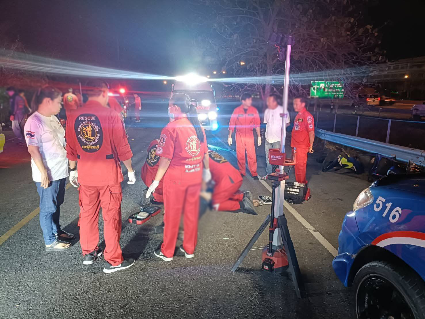 วันที่ 19 กุมภาพันธ์ 2569 เวลา 22.30 น. รับแจ้งจาก กู้ภัยมังกร เกิดอุบัติเหตุรถจักรยานยนต์ 2 คันชนกัน บนถนนเลียบมอเตอร์เวย์ ช่วงอุโมงค์ซากสมอ ในพื้นที่เขตพื้นที่เทศบาลเมืองดอนหัวฬ่อ อำเภอเมือง จังหวัดชลบุรี