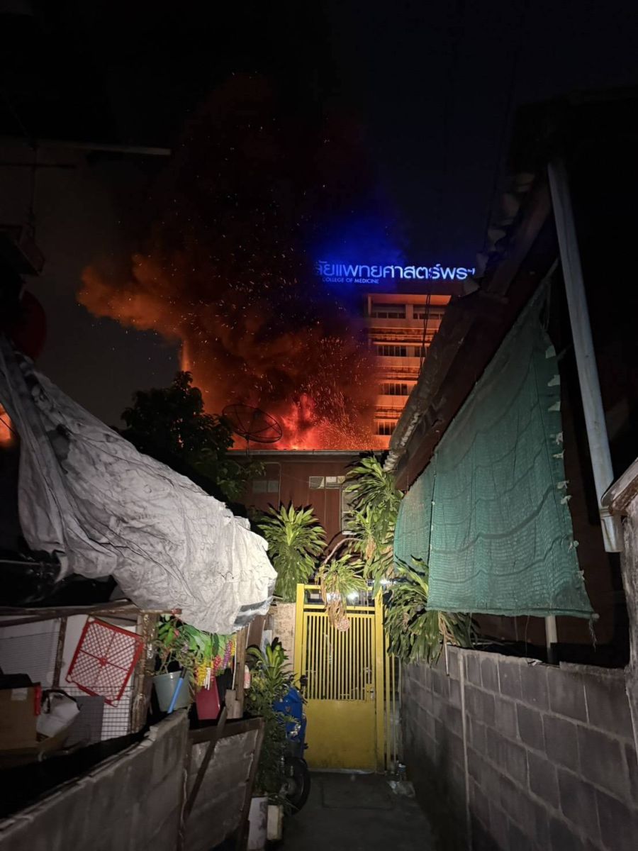 เวลา 22.00 น. ขณะนี้เพลิงสงบ เบื้องต้นเพลิงลุกไหม้ประมาณ 4 หลังคาเรือน เจ้าหน้าที่ตรวจสอบแล้วเพลิงลุกไหม้เฉพาะบ้านเรือนประชาชน เพลิงไม่ได้ลุกลามเข้าไปในโรงพยาบาล มีเพียงกลุ่มควันที่ลอยเข้าไปเท่านั้น ในที่เกิดเหตุพบผู้เสียชีวิต จำนวน 1 ราย