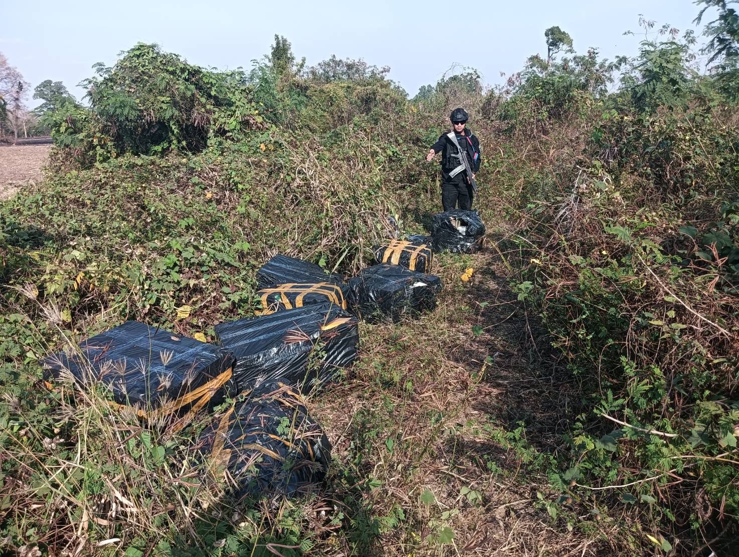 ห้วงวันที่ 19 - 20 ก.พ.69 กกล.บูรพา โดย ฉก.อรัญประเทศ ร้อย.ทพ.1204 ทำการลาดตระเวนด้วยการเดินเท้า เพื่อป้องกันและสกัดกั้นการกระทำผิดกฎหมายในพื้นที่รับผิดชอบชายแดนไทย - กัมพูชา บริเวณ บ.หนองปรือ ม.7 ต.ผ่านศึก อ.อรัญประเทศ จ.สระแก้ว ตรวจพบกลุ่มบุคคลต้องสงสัย ไม่ทราบสัญชาติประมาณ 10 คน กำลังเดินเท้าอยู่ในช่องทางธรรมชาติ พร้อมสัมภาระมาจากทางประเทศกัมพูชา เข้ามาในประเทศไทย จึงเรียกให้หยุดเพื่อขอทำการตรวจสอบ กลุ่มบุคคลต้องสงสัย จึงได้ทิ้งกล่องสัมภาระดังกล่าวก่อนจะวิ่งหลบหนีกลับไปที่ฝั่งประเทศกัมพูชา จนท.ทหาร จึงได้ทำการตรวจสอบกล่องสัมภาระ ในการเข้าตรวจสอบ และตรวจยึด จำนวน 2 ครั้ง ดังนี้