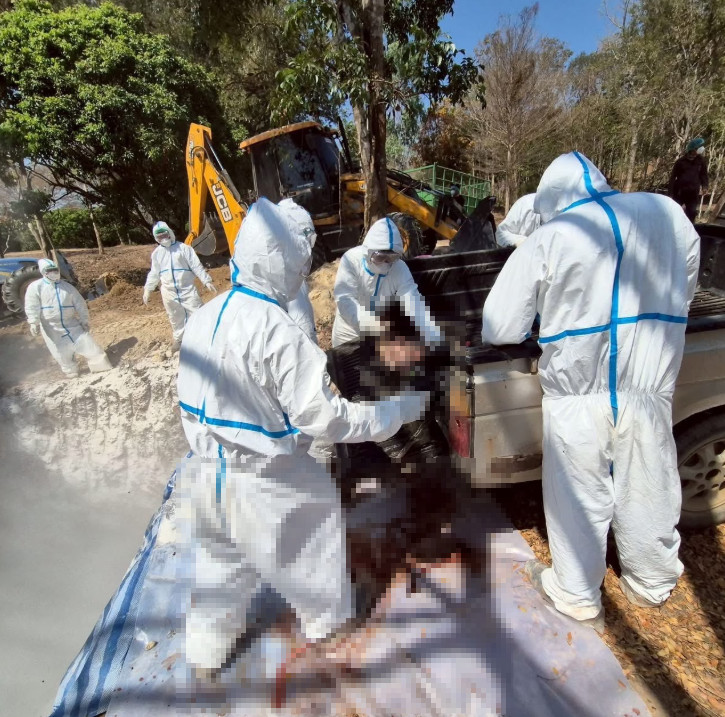 นายกริชสยาม คงสตรี ผู้อำนวยการสำนักบริหารพื้นที่อนุรักษ์ที่ 16 เชียงใหม่ บอกว่าในระยะแรกใช้วิธีการเผาทำลาย แต่เนื่องจากเตาเผาไม่เพียงพอ จึงปรับเปลี่ยนมาใช้วิธีขุดหลุมฝังภายในพื้นที่ศูนย์บริบาลคุ้มเสือแม่แตง มีการฝังซากเป็นหลุม พร้อมปักธงกำหนดพิกัดอย่างชัดเจน และระบุหมายเลขประจำตัวเสือที่ฝังในแต่ละหลุมอย่างเป็นระบบ จากนั้นมีการโรยน้ำยาฆ่าเชื้อตามหลักวิชาการ เพื่อป้องกันการปนเปื้อนและการแพร่กระจายของเชื้อโรค การดำเนินการทั้งหมดอยู่ภายใต้การควบคุมและกำกับดูแลอย่างใกล้ชิดของเจ้าหน้าที่สำนักงานปศุสัตว์ และเจ้าหน้าที่สำนักบริหารพื้นที่อนุรักษ์ที่ 16 เชียงใหม่ ส่วนเรื่องเขี้ยวเสือและหนังเสือนั้นไม่สามารถเก็บไว้ได้เพราะว่า เป็นซากติดเชื้อ