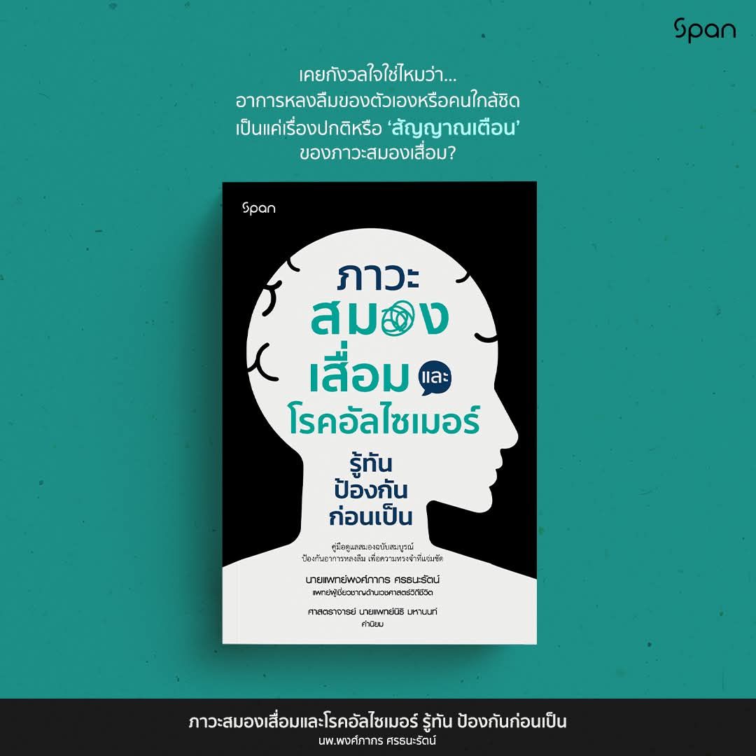 คู่มือดูแลสมองฉบับสมบูรณ์มาแล้ว หนังสือ"ภาวะสมองเสื่อมและโรคอัลไซเมอร์ รู้ทัน ป้องกันก่อนเป็น" เขียนโดย นายแพทย์พงศ์ภากร ศรธนะรัตน์
