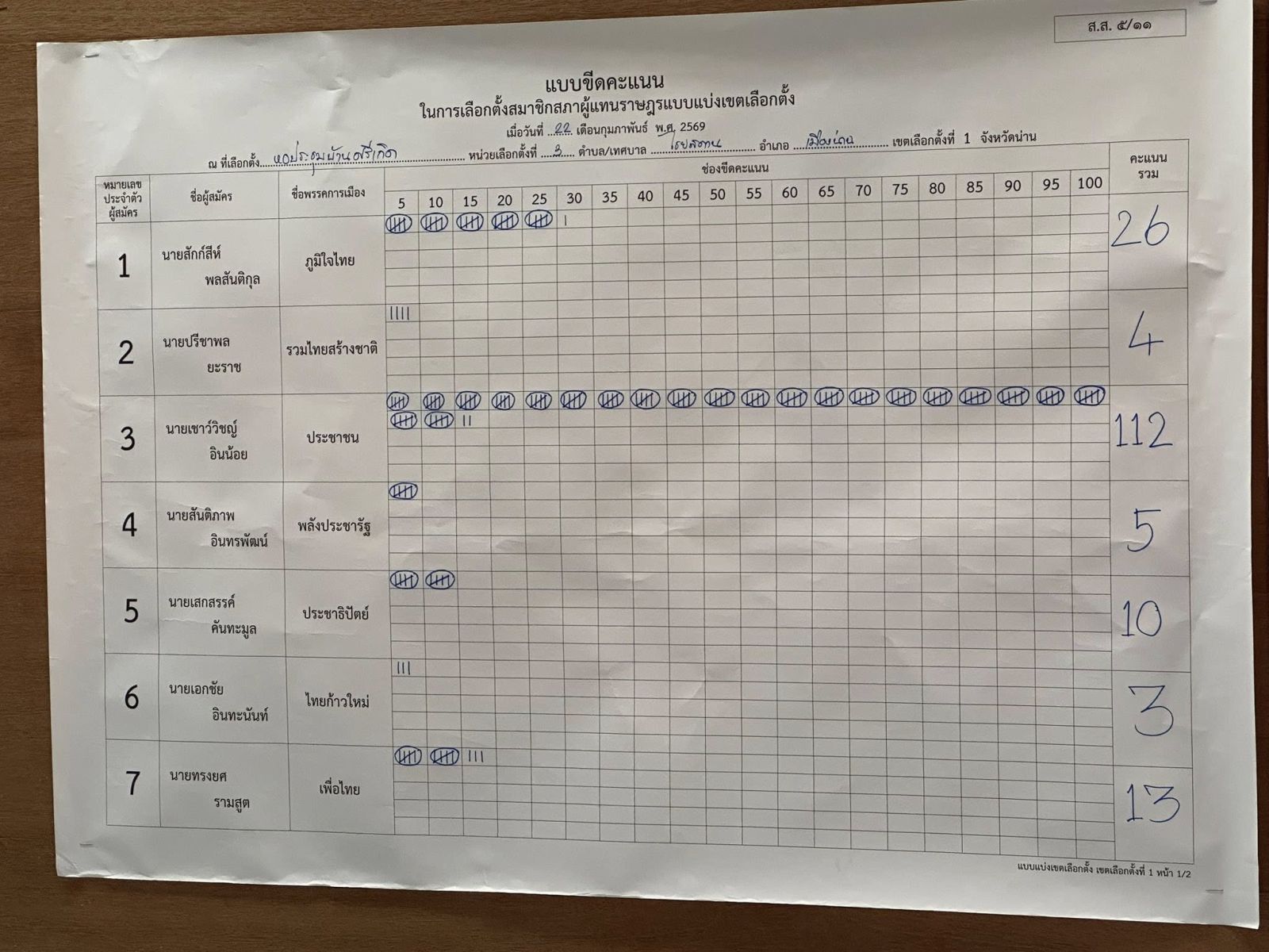 พรรคภูมิใจไทย ได้ 26 คะแนน