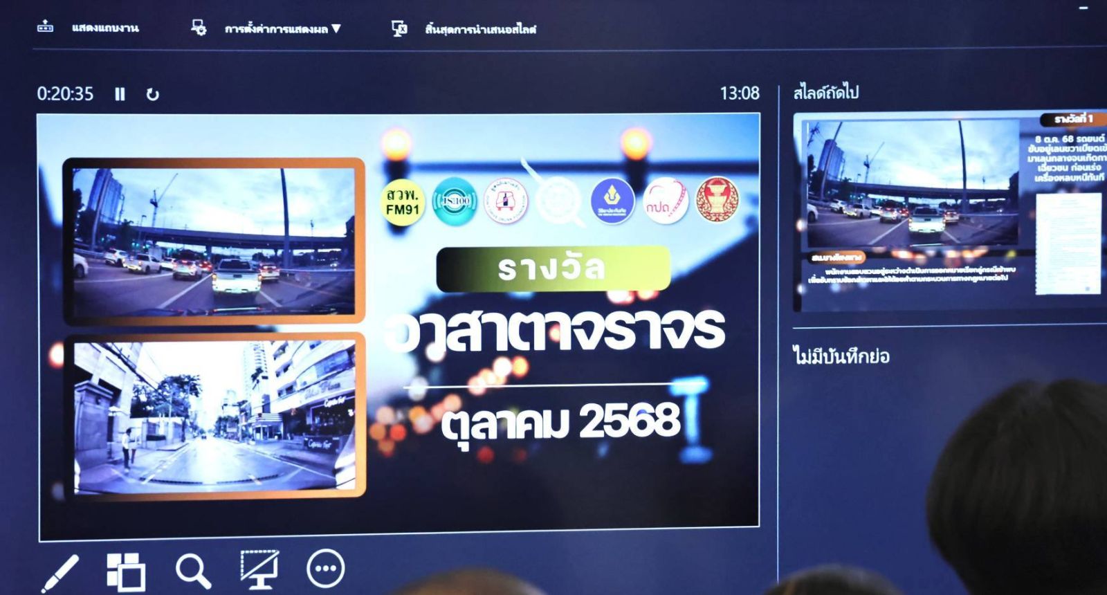สำนักงานตำรวจแห่งชาติและภาคี มอบรางวัลคลิปกล้องหน้ารถ “โครงการอาสาตาจราจร” ประจำเดือน ต.ค.-พ.ย. 68 พร้อมรณรงค์ขับขี่ตามกฎจราจรอย่างปลอดภัย