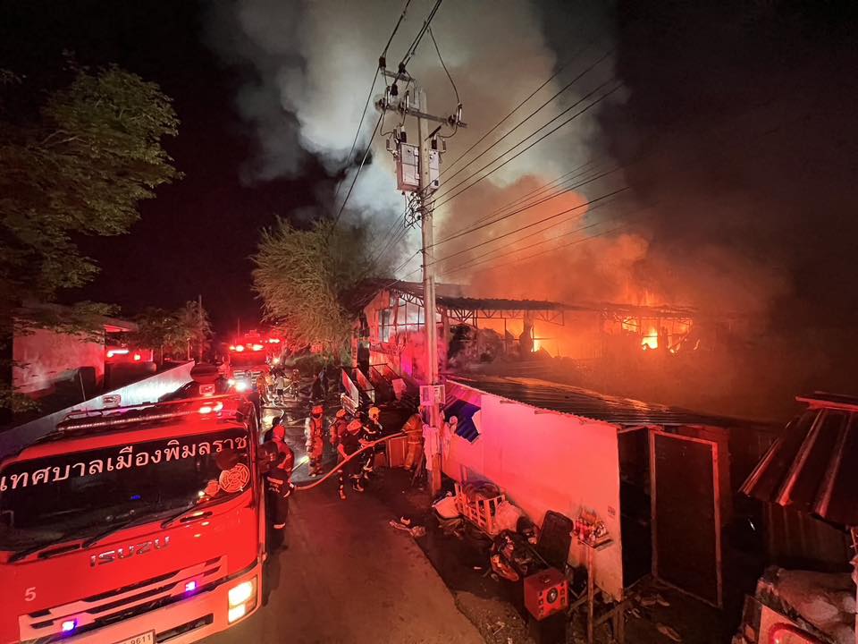 ขณะนี้ แสงเพลิงเต็มพื้นที่โกดังและทะลุโกดัง และกำลังลุกลามที่พักข้างโกดัง เจ้าหน้าที่กำลังใช้น้ำจำนวน 4-5 หัวฉีด ยังไม่สามารถควบคุมเพลิงได้