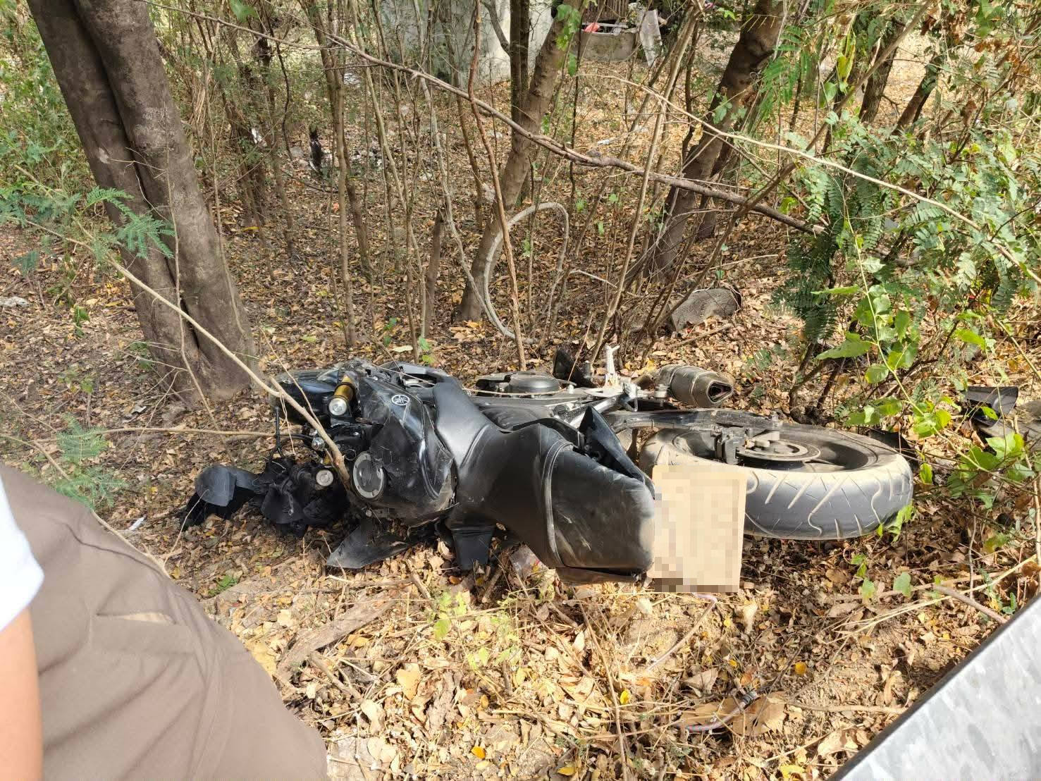 หนุ่มแคนาดา ขี่รถจักรยานยนต์เสียหลักหลุดโค้งชนกับกระบะ เสียชีวิตกลางถนนสาย เถิน - ทุ่งเสลี่ยม จ.ลำปาง