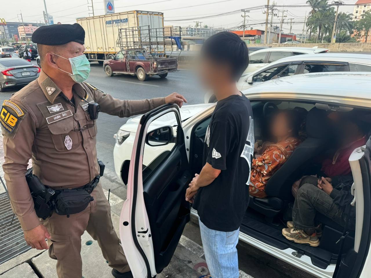 โดยบก.ทล. สืบสวนเฝ้าระวังในพื้นที่จังหวัดปทุมธานี หลังได้รับข้อมูลว่าจะมีการลักลอบลำเลียงแรงงานต่างด้าวเข้ากรุงเทพมหานคร จนต่อมาเจ้าหน้าที่พบรถกระบะ ลักษณะติดฟิล์มมืดทึบ ขับผ่านบริเวณถนนพหลโยธิน เจ้าหน้าที่จึงส่งสัญญาณไฟกระพริบสีแดง พร้อมใช้สัญญาณเสียงและประกาศคำสั่งผ่านไมโครโฟนให้หยุดรถ กระทั่งสามารถเรียกตรวจได้ที่กิโลเมตรที่ 38–39