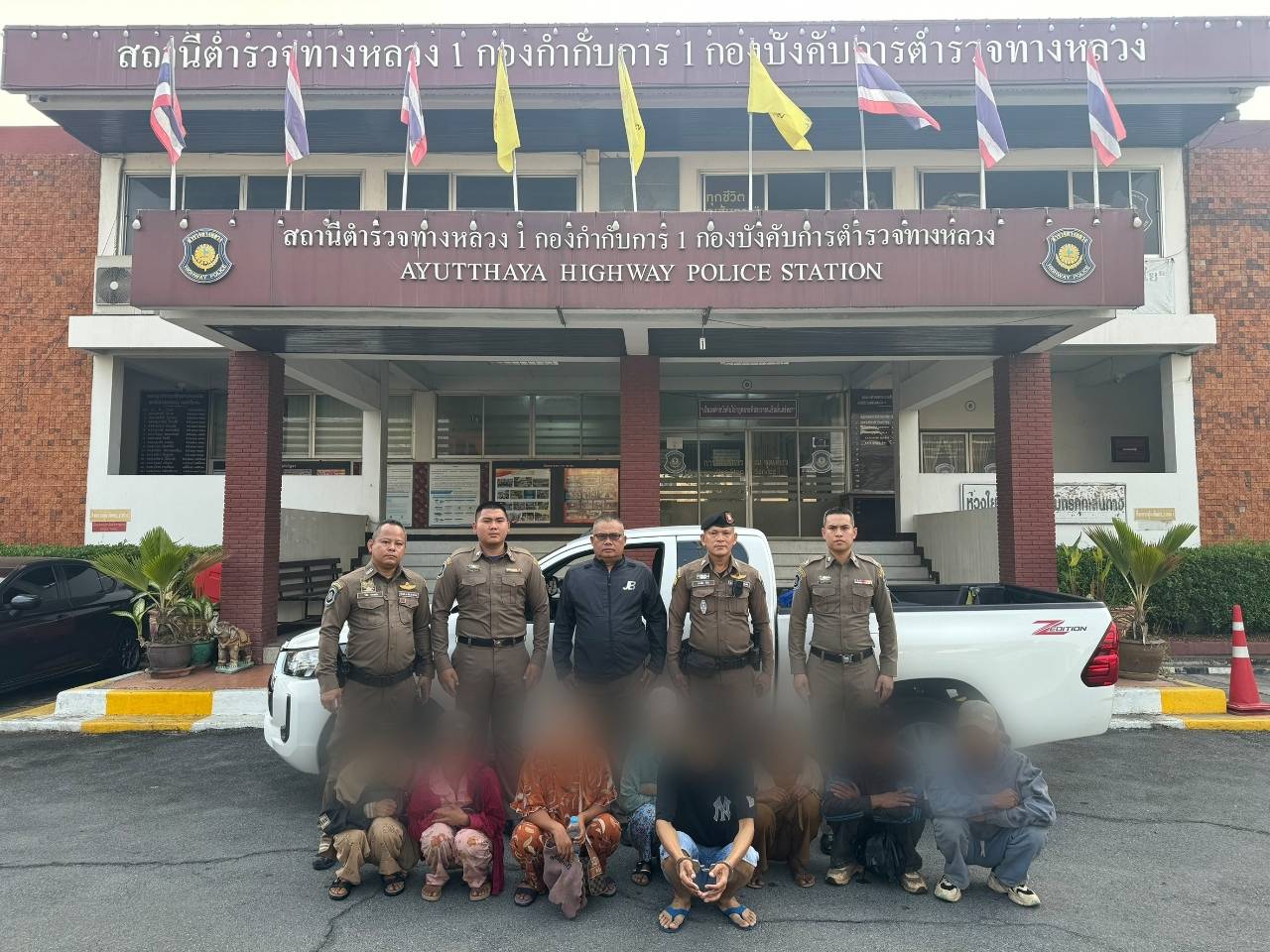 ตำรวจสอบสวนกลาง (CIB) โดยกองบังคับการตำรวจทางหลวง จับกุมผู้ต้องหา 8 ราย สัญชาติเมียนมา เจ้าหน้าที่แจ้งข้อหา รู้ว่าคนต่างด้าวคนใดเข้ามาในราชอาณาจักรโดยฝ่าฝืนกฎหมาย ให้เข้าพักอาศัย ซ่อนเร้น หรือช่วยด้วยประการใด ๆ เพื่อให้คนต่างด้าวนั้นพ้นจากการจับกุม และเป็นคนต่างด้าวเดินทางเข้ามาและอยู่ในราชอาณาจักรโดยไม่ได้รับอนุญาต พร้อมของกลาง รถบรรทุกส่วนบุคคล 2 คัน โดยไล่ล่าจับกุมได้ บริเวณ กม.38-39 ถนนพหลโยธิน(ขาเข้า)อำเภอคลองหลวง จังหวัดปทุมธานี