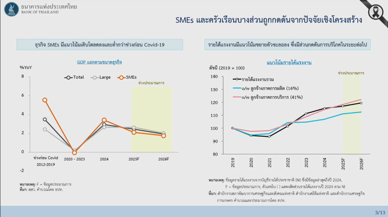 ทั้งนี้ คณะกรรมการฯ ให้ความสำคัญกับเสถียรภาพระบบการเงินในระยะปานกลาง รวมทั้งขีดความสามารถของนโยบายการเงินที่มีอยู่จำกัดภายใต้บริบทที่มีความไม่แน่นอนสูง และเห็นว่าอัตราดอกเบี้ยที่ปรับลดลงสะท้อนถึงนโยบายการเงินที่ผ่อนคลายเพียงพอและสอดคล้องกับการประเมินแนวโน้มเศรษฐกิจในระยะข้างหน้า โดยเศรษฐกิจที่ขยายตัวต่ำจากปัจจัยเชิงโครงสร้างไม่สามารถแก้ไขได้ด้วยนโยบายการเงินเพียงอย่างเดียว แต่จำเป็นต้องผสมผสานนโยบายหลายด้านเพื่อเพิ่มผลิตภาพการผลิตและขีดความสามารถในการแข่งขันของภาคธุรกิจ รวมทั้งมาตรการทางการเงินเฉพาะจุดอื่น