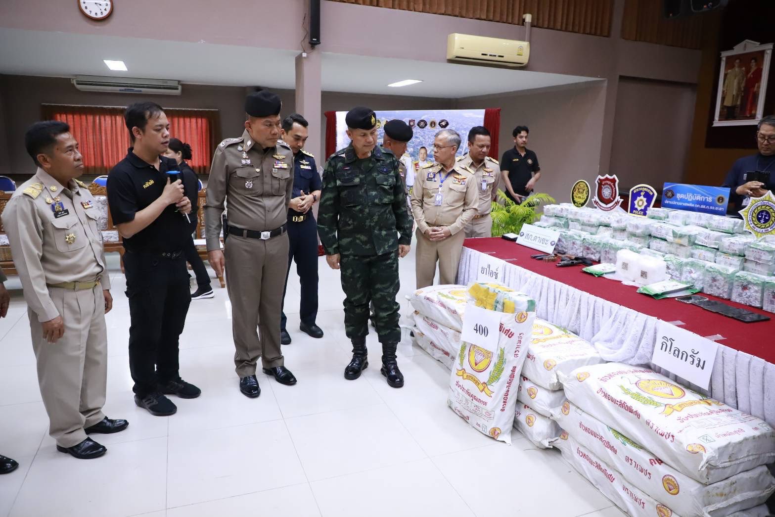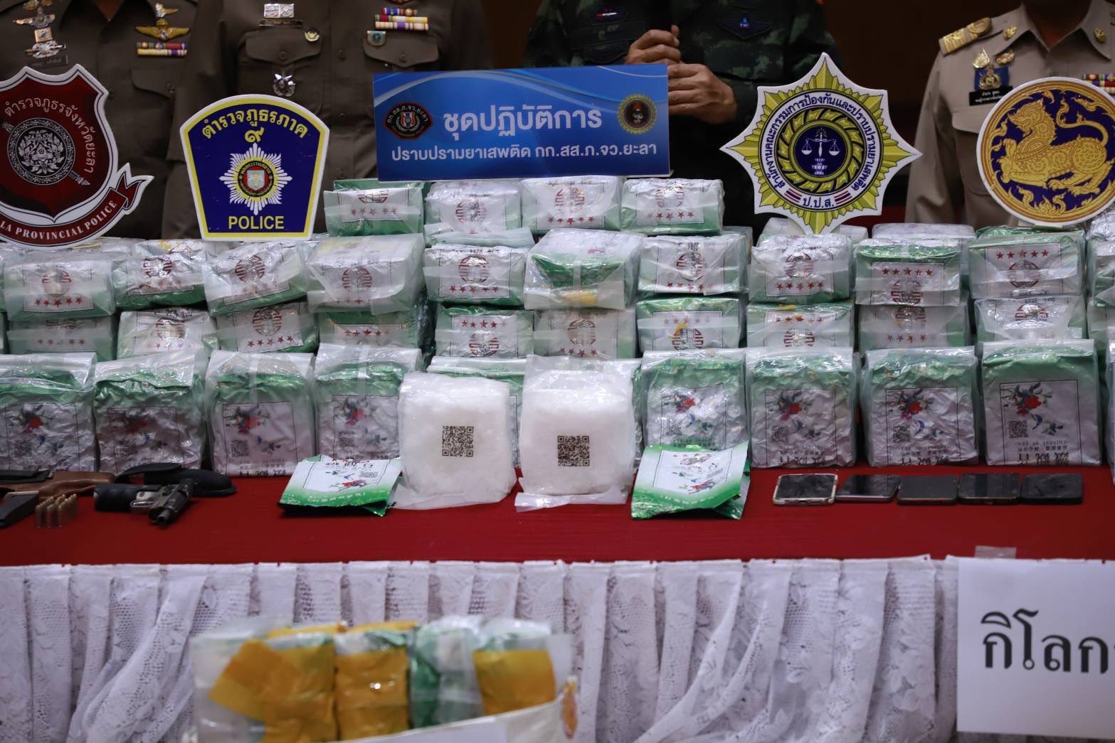 แม่ทัพภาค 4, ผบช.ภ.9 นำแถลงข่าวทลายเครือข่ายใหญ่ รวบ 3 ผู้ต้องหาค้ายาไอซ์ 400 กก. มูลค่ากว่า 72 ล้านบาท เตรียมส่งออกมาเลเซีย คาริมคลอง จ.ยะลา