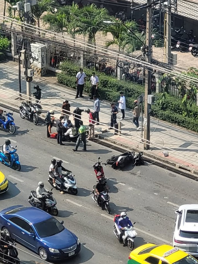 หน้าวิทยาลัยเทคโนโลยีดอนบอสโก รถเก๋งชนกับรถจยย. มีผู้บาดเจ็บ