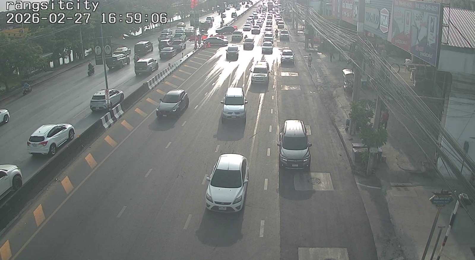 27 ก.พ. 69 เวลา 16.55 น. ถ.รังสิตปทุมธานี หน้าหมู่บ้านรัตนโกสินทร์ 200 ปี มุ่งหน้า ต่างระดับรังสิต-ฟิวเจอร์พาร์ค ติดแน่น ท้ายสะสมแยกบางพูน ต่อเนื่องเข้า ถ.345 (ซ่อมสร้าง) หน้าโรงแรมพาราไดซ์อินน์