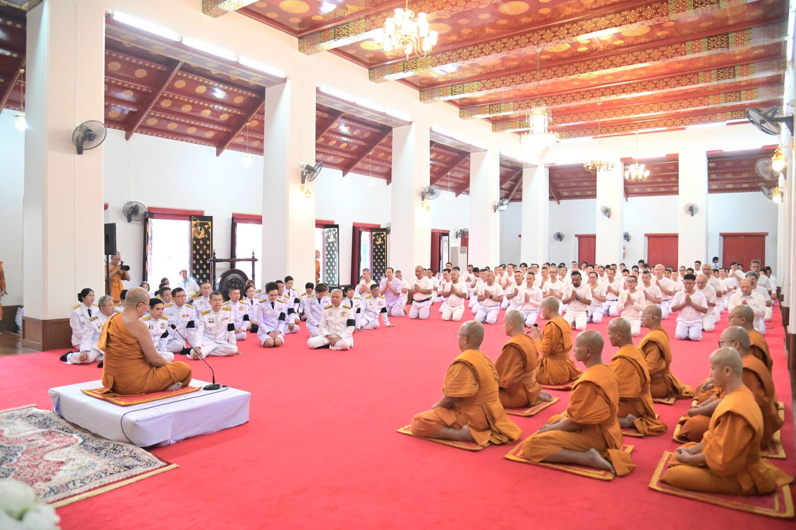 วันที่ ๓ มีนาคม ๒๕๖๙ เวลา ๐๗.๐๐ น. สำนักงานปลัดสำนักนายกรัฐมนตรี ร่วมกับวัดมหาธาตุยุวราชรังสฤษฎิ์ วัดสุวรรณภูมิพุทธชยันตี และคณะพระธรรมทูตสายประเทศอินเดีย - เนปาล จัดโครงการบรรพชาอุปสมบทเพื่อถวายพระราชกุศล แด่สมเด็จพระนางเจ้าสิริกิติ์ พระบรมราชินีนาถ พระบรมราชชนนีพันปีหลวง โดยเจ้าประคุณ สมเด็จพระมหาธีราจารย์ กรรมการมหาเถรสมาคม เจ้าคณะใหญ่หนเหนือ เจ้าอาวาสวัดพระเชตุพนวิมลมังคลาราม เป็นประธานฝ่ายสงฆ์ พร้อมด้วย เจ้าประคุณสมเด็จพระพุฒาจารย์ กรรมการมหาเถรสมาคม เจ้าคณะใหญ่หนตะวันออก เจ้าอาวาสวัดไตรมิตรวิทยาราม และนายโสภณ ซารัมย์ รองนายกรัฐมนตรี เป็นประธานฝ่ายฆราวาส พร้อมด้วยนางศุภจี สุธรรมพันธุ์ รองนายกรัฐมนตรี นางยุพา ทวีวัฒนะกิจบวร ปลัดสำนักนายกรัฐมนตรี คณะผู้บริหาร และเจ้าหน้าที่สำนักงานปลัดสำนักนายกรัฐมนตรี เข้าร่วมพิธีปลงผมและรับมอบผ้าไตรพระราชทานแก่ผู้เข้าร่วมบรรพชาอุปสมบท จำนวน ๙๓ ราย