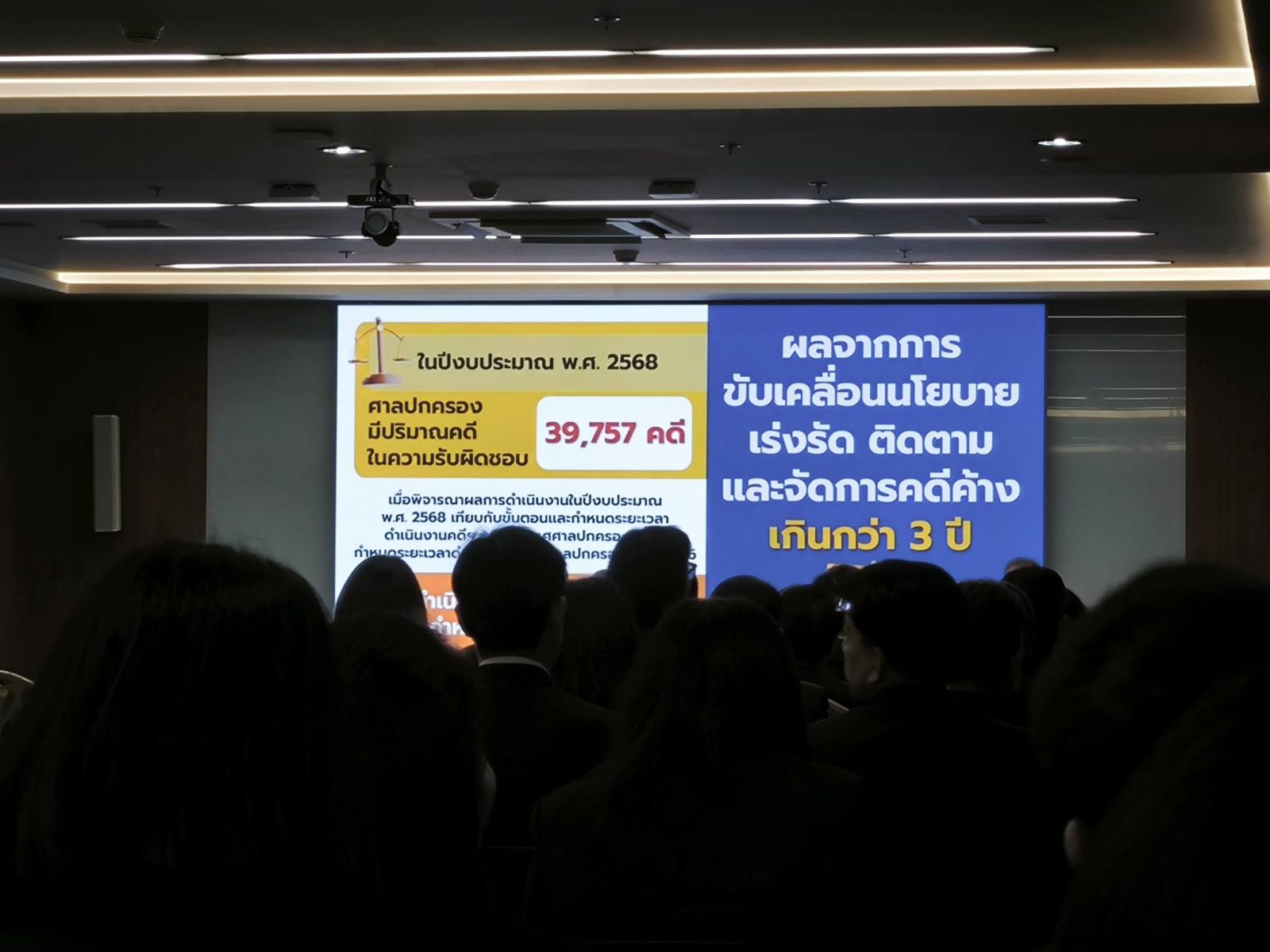 ประธานศาลปกครองสูงสุด เปิดเผยว่า ผลการดำเนินงานด้านการพิจารณาพิพากษาคดีปกครองของศาลปกครอง ตลอดระยะเวลา 25 ปี นับตั้งแต่ศาลปกครองเปิดทำการ เมื่อวันที่ 9 มีนาคม 2544 จนถึงวันที่ 28 กุมภาพันธ์ 2569 มีคดีที่เข้าสู่การพิจารณาของศาลปกครอง จำนวน ๒๓๘,๘๓๐ 238,830 คดี เป็นคดีที่ยื่นฟ้องต่อศาลปกครองชั้นต้น จำนวน ๑๖๕,๕๘๓ 165,583 คดี และเป็นคดีอุทธรณ์หรือคดีฟ้องตรงต่อศาลปกครองสูงสุด จำนวน ๗๓,๒๔๗ 73,247 คดี จากภาพรวมคดีที่เข้าสู่การพิจารณาของศาลปกครองทั้งหมดนั้น ศาลปกครองพิจารณาพิพากษาคดีแล้วเสร็จ จำนวน 210,689 คดี คิดเป็นร้อยละ 88 ของคดีที่รับเข้า และผลจากการขับเคลื่อนนโยบายเร่งรัด ติดตาม และจัดการคดีค้างเกินกว่า 3 ปี เพื่อให้ประชาชนได้รับความยุติธรรมโดยไม่ล่าช้า และเพิ่มประสิทธิภาพการบริหารจัดการคดีปกครองให้แล้วเสร็จตามกรอบระยะเวลาที่กำหนด พบว่า ในปีงบประมาณ พ.ศ. 2568 ศาลปกครองมีปริมาณคดีในความรับผิดชอบ จำนวน ๓๙,๗๕๗ 39,757 คดี โดยเมื่อพิจารณาผลการดำเนินงานในปีงบประมาณ พ.ศ. 2568 เทียบกับขั้นตอนและกำหนดระยะเวลาดำเนินงานคดีฯ ตามประกาศศาลปกครอง เรื่อง กำหนดระยะเวลาดำเนินงานคดีในศาลปกครอง พ.ศ. 2566 พบว่า มีคดีที่ดำเนินการได้ตามกำหนดระยะเวลาฯ จำนวน 39,514 คดี คิดเป็นร้อยละ 99.39