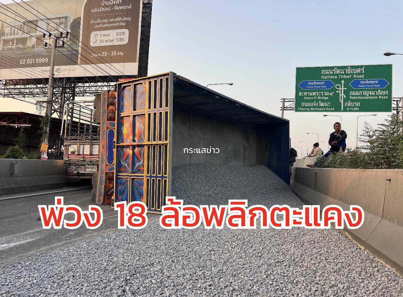 07.20 น. ถนนราชพฤกษ์ ขาเข้า บนสะพานข้ามคลองข่อย ก่อนถึงตัดถนนชัยพฤกษ์ อุบัติเหตุ รถบรรทุก 18 ล้อ บรรทุกหินคลุก เสียหลักพลิกตะแคง ทำให้หินที่บรรทุกมา หล่นอยู่บนพื้นถนนจำนวนมาก เจ้าหน้าที่ ขอปิดการจราจรในช่องทางคู่ขนาน เพื่อทำการเคลื่อนย้าย ขณะนี้การจราจรติดขัดมาก พื้นที่ สภ.ชัยพฤกษ์ #รายงานจราจร #อุบัติเหตุ #รถติด #FM91