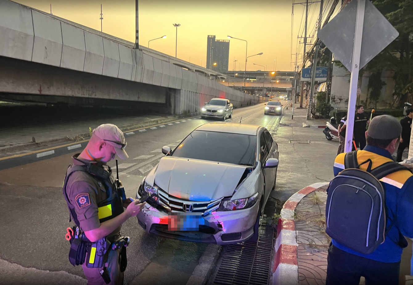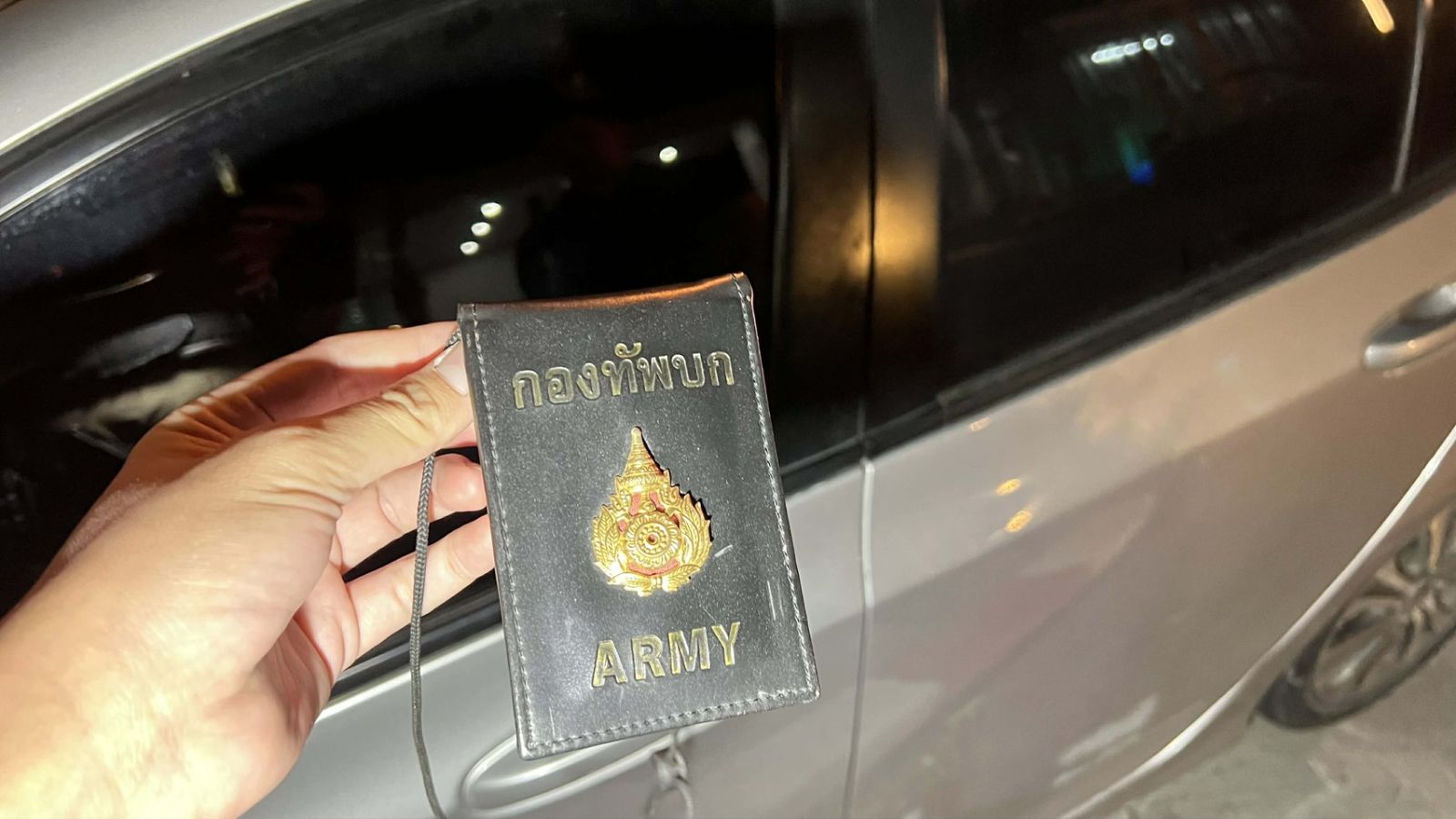 ในที่เกิดเหตุพบรถเก๋งยี่ห้อฮอนด้า รุ่น ซิตี้ สีบรอนซ์ ทะเบียน กทม.จอดอยู่ สภาพของรถทั้งด้านหน้าและท้ายรถยุบพังเสียหาย ประตูหลังขวา มีร่องรอยชนพังเสียหายจนประตูรถไม่สามารถปิดได้ บริเวณที่วางเท้าเบาะหน้าซ้ายพบซองบัตรประจำตัวระบุชื่อทหารยศร้อยเอกตกอยู่ อีกทั้งภายในรถบริเวณเบาะหลังพบคราบเลือดติดอยู่ รวมไปถึงแผงประตูฝั่งซ้ายมีคราบเลือดเช่นกัน ส่วนบริเวณกระจกประตูด้านคนขับและขอบประตูก็มีคราบเลือด ต่อมาทางเจ้าหน้าที่ตำรวจยังพบว่าที่แผ่นป้ายทะเบียนด้านหลังมีการนำสติกเกอร์แปะทับตัวเลข 9 ไว้