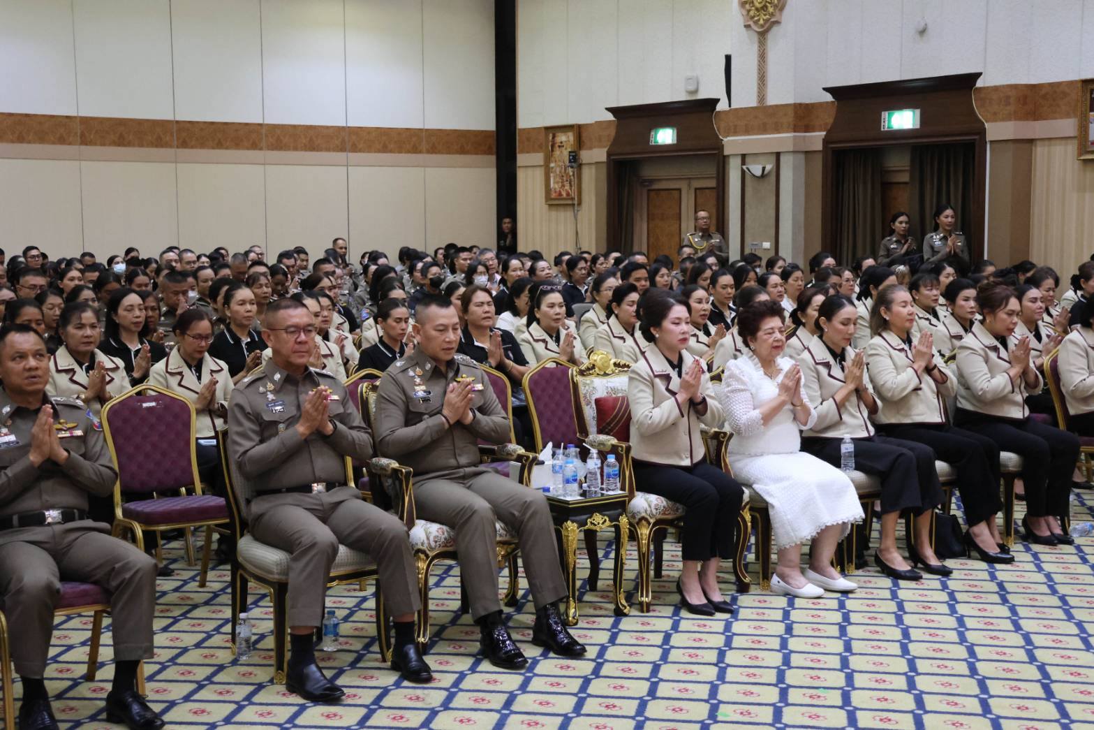 วันนี้ (11 มีนาคม 2569) เวลา 09.00 น. พล.ต.อ.กิตติ์รัฐ พันธุ์เพ็ชร์ ผู้บัญชาการตำรวจแห่งชาติ (ผบ.ตร.) พร้อมด้วย คุณกนกวรรณ พันธุ์เพ็ชร์ นายกสมาคมแม่บ้านตำรวจ ร่วมโครงการ “แสงธรรมนำใจ” โดยมี พล.ต.ท.สุรพงษ์ ถนอมจิตร ผู้ช่วย ผบ.ตร., คุณณฐิกา ปิตะนีละบุตร อุปนายกสมาคมแม่บ้านตำรวจ, คุณวีรปริยา อัจฉริยะประดิษฐ์ อุปนายกสมาคมแม่บ้านตำรวจ, คุณอนงค์นาถ ถนอมจิตร กรรมการบริหารสมาคมแม่บ้านตำรวจ/ที่ปรึกษาโครงการฯ พร้อมด้วยข้าราชการตำรวจ และคณะแม่บ้านตำรวจ รวมกว่า 300 คน ร่วมฟังธรรมบรรยายจาก "พระธรรมวชิรญาณโกศล วิ." (หลวงพ่อเยื้อน ขันติพโล) เจ้าคณะจังหวัดสุรินทร์ (ธรรมยุตร) เจ้าอาวาสวัดบูรพาราม (พระอารามหลวง) และเจ้าอาวาสวัดเขาศาลาอตุลฐานะจาโร จ.สุรินทร์ ณ ห้องศรียานนท์ ชั้น 2 อาคาร 1 สำนักงานตำรวจแห่งชาติ และทางออนไลน์