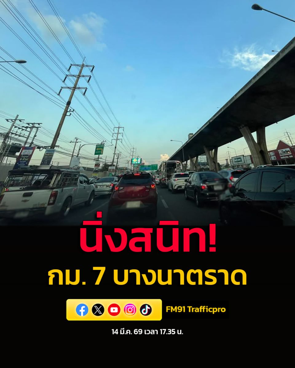 14 มี.ค. 69 เวลา 18.35 น. ถ.บางนาตราด ขาออก เชิงทางขึ้นสะพานกลับรถเมกา บางนา (กม.8)