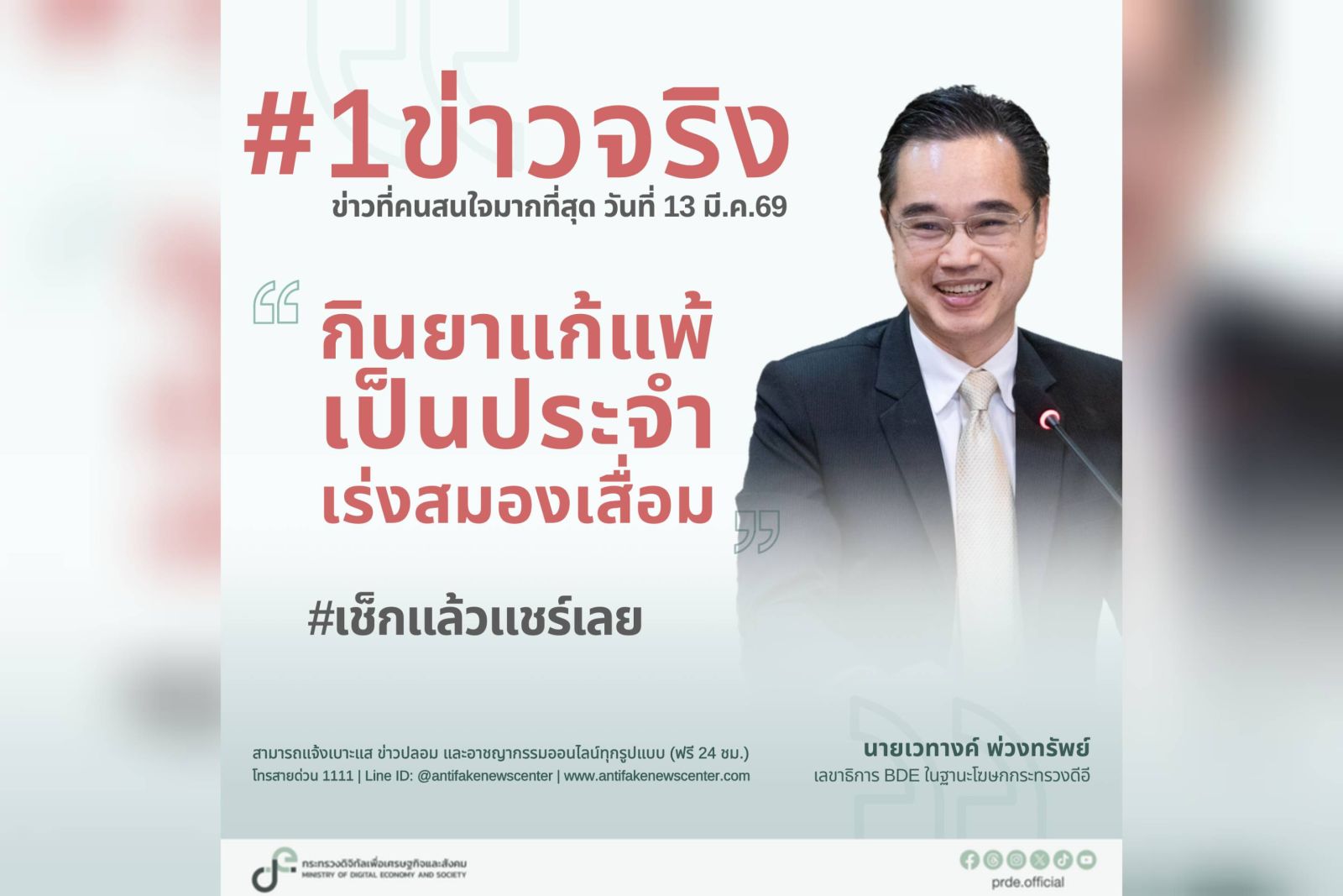 ดีอี แจงข่าวจริง "กินยาแก้แพ้ประจำ เร่งสมองเสื่อม" ขอ ปชช. เลือกเชื่อ-แชร์ ข้อมูลทางการเท่านั้น