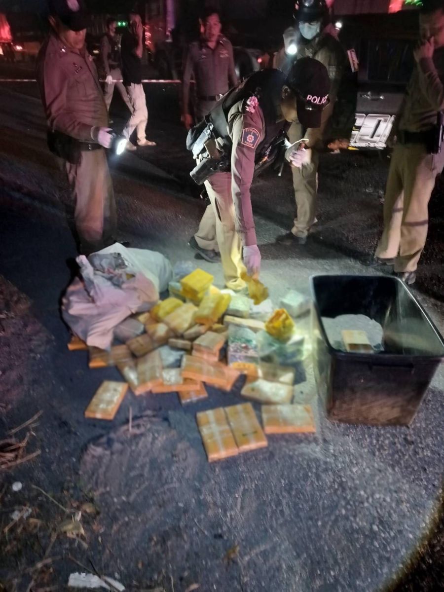 ทางเจ้าหน้าที่ตำรวจ สภ.กลางดง ตรวจสอบ เป็นรถกระบะ ลักษณะแต่งซิ่ง สีเขียว ไม่พบป้ายทะเบียน จากการตรวจค้น พบลังพลาสติก สีดำ ภายในบรรจุยาเสพติด เบื้องต้น มีทั้งยาบ้า, ไอซ์