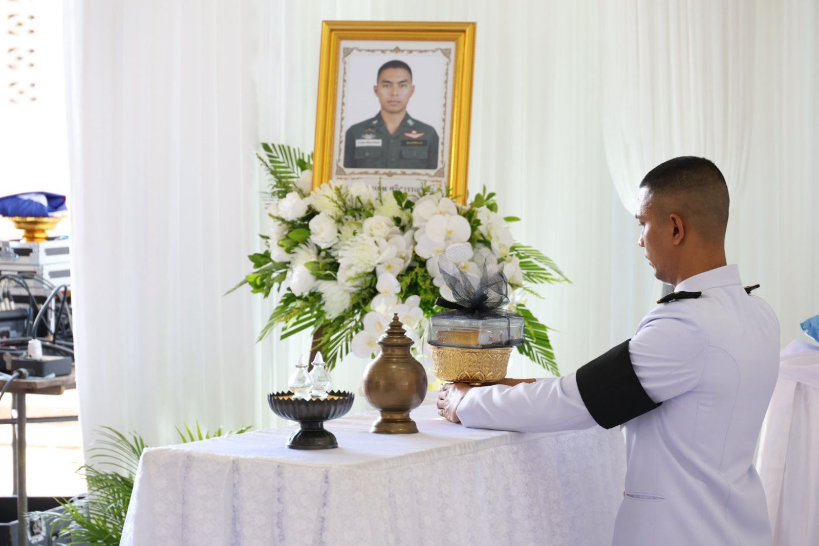พระบาทสมเด็จพระเจ้าอยู่หัว โปรดเกล้าฯ พระราชทานน้ำหลวงอาบศพ แก่สิบตำรวจเอก วราเทพ ศรีสุวรรณชนะ ผู้เสียชีวิตจากการปฏิบัติหน้าที่ในพื้นที่จังหวัดปัตตานี