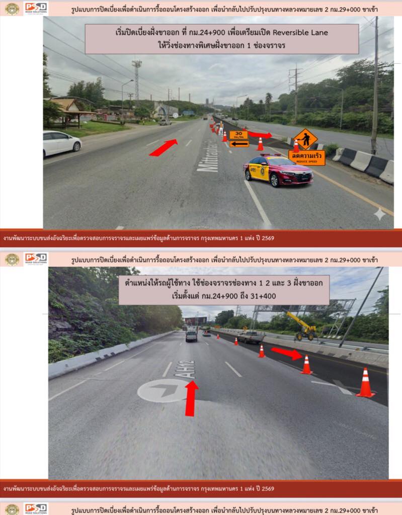- ทำการเบี่ยงออกช่องทางพิเศษที่ กม.24 บริเวณหน้าโรงเรียนซับบอน
