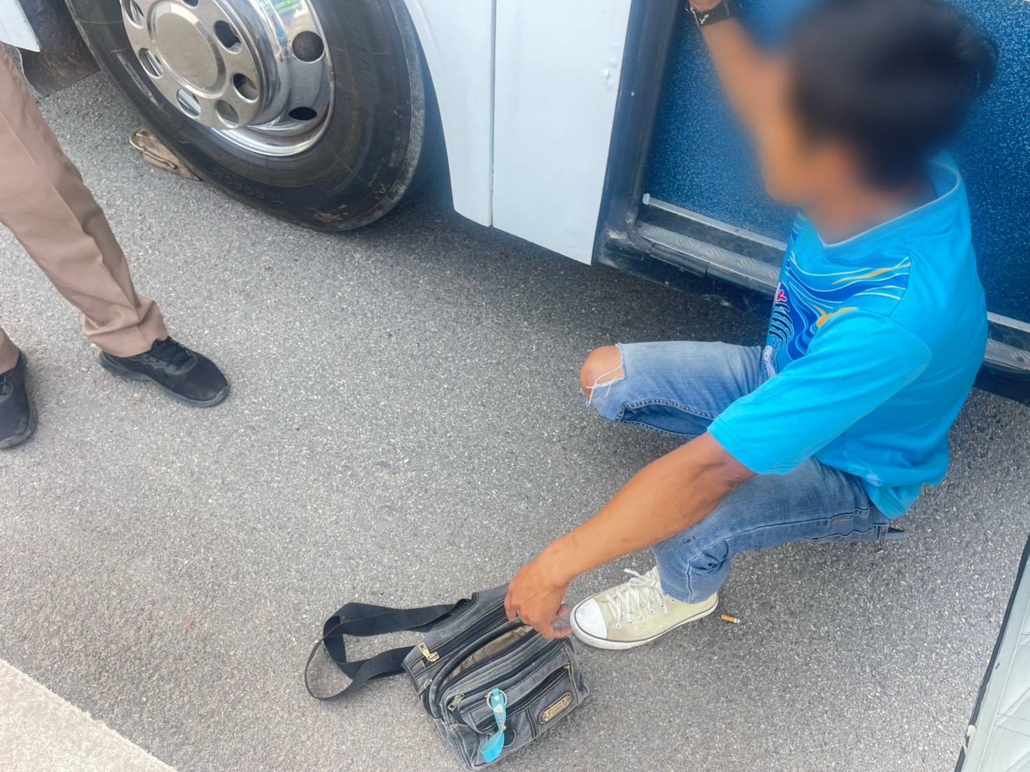 โดยขณะที่ตำรวจชุดจับกุมได้ออกตรวจป้องกันเหตุอาชญากรรม กวดขันวินัยจราจร บริเวณถนนหลวงหมายเลข 304 กม.177 จ.ปราจีนบุรี (จุดกลับรถเกือกม้าหนองกี่) ได้มีรถบัสโดยสารไม่ประจำทาง ทะเบียน กทม. จอดขวางช่องทางการจราจรอยู่ ตำรวจจึงเข้าไปตรวจสอบ พบคนขับนั่งอยู่ข้างรถ ตำรวจสอบถามว่ารถเป็นอะไร โดยคนขับตอบว่ารถน้ำมันหมด แต่ท่าทีมีพิรุธ ตำรวจจึงขอตรวจใบอนุญาตขับขี่