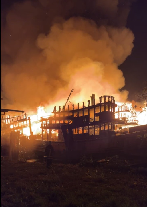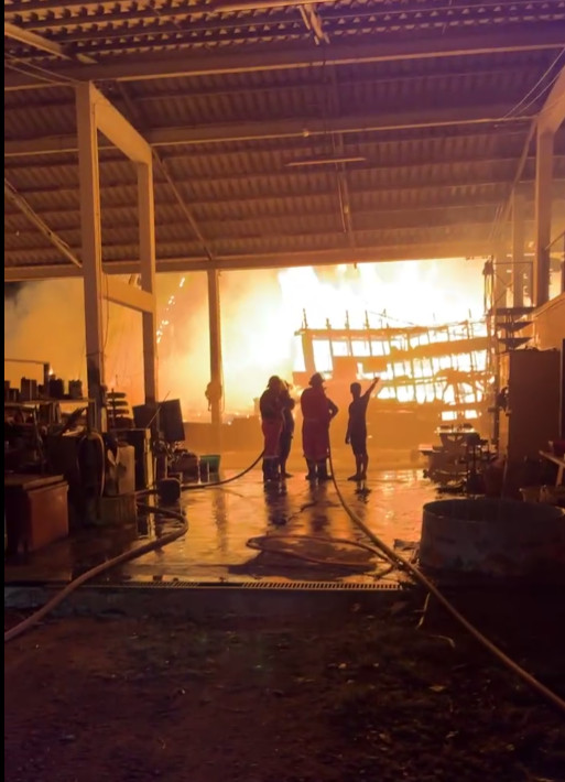 เบื้องต้นเพลิงไห้มลุกลาม เสียหายแล้วจำนวน 5 ลำ ยังไม่สามารถควบคุมเพลิงได้ เนื่องจากทางเข้าจุดเกิดเหตุทางเข้าค่อนข้างแคบ