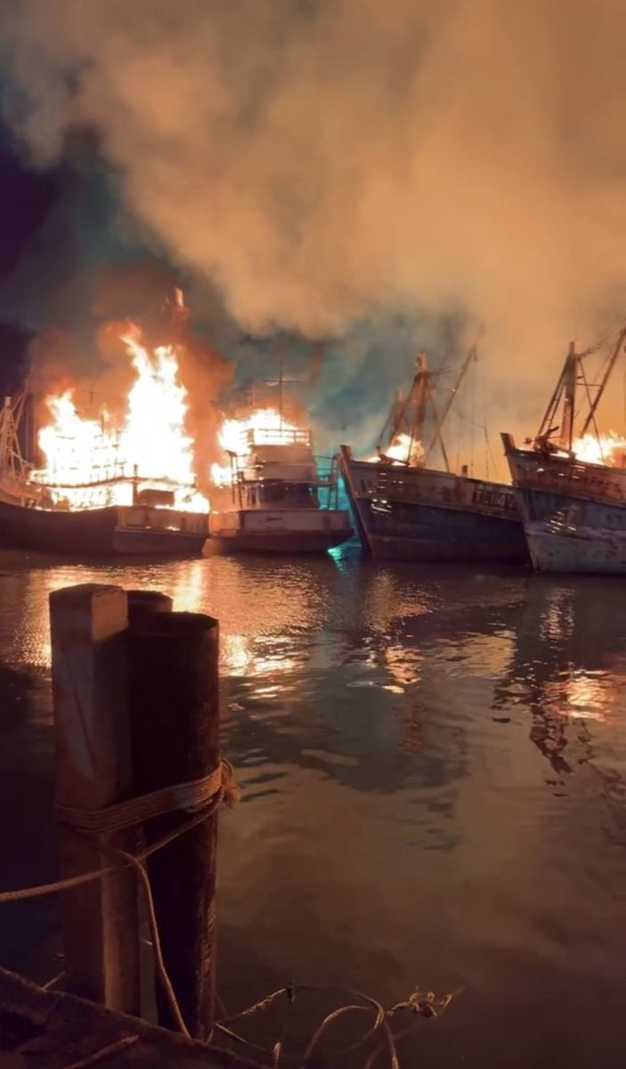 ไฟไหม้เรือประมง บริเวณท่าเทียบเรือ ย่านคลองขนอม เสียหายแล้วหลายลำ จนท.เร่งฉีดน้ำควบคุมเพลิง จ.นครศรีธรรมราช