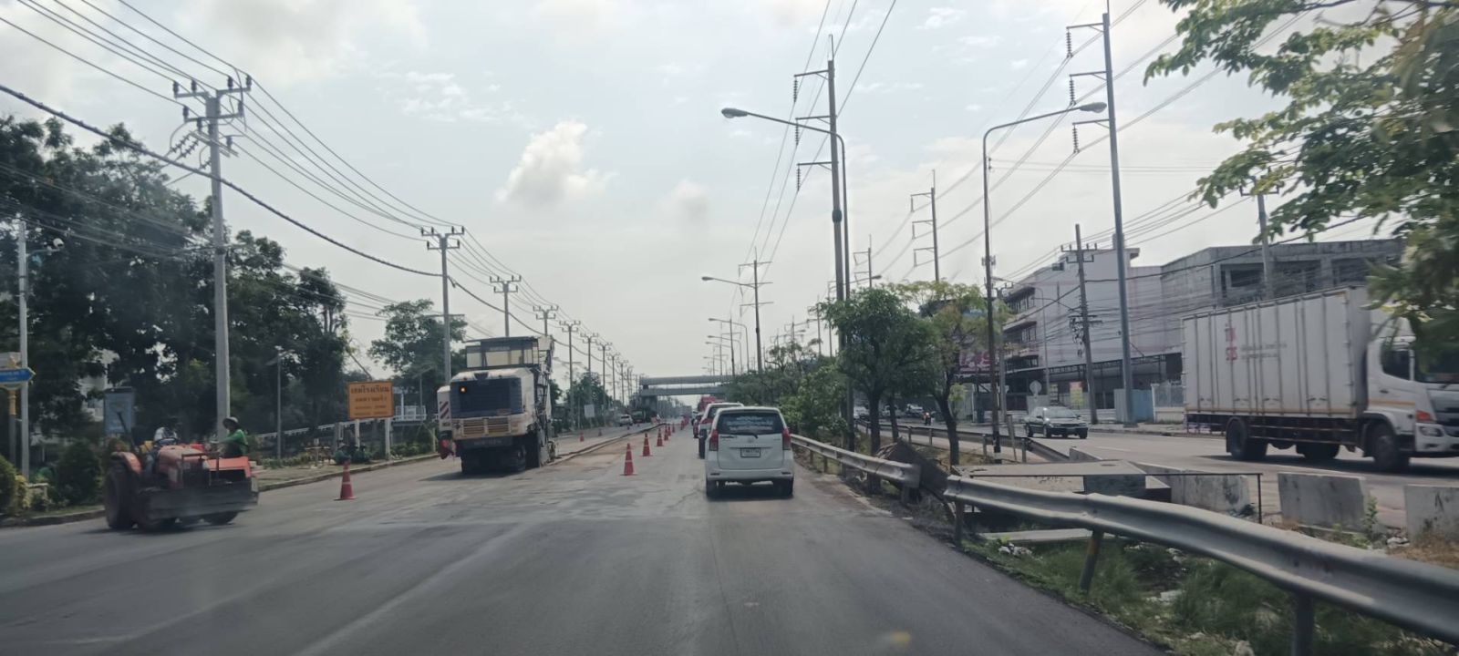 สภ.บางปู จ.สมุทรปราการ แจ้งวันนี้ (20 มี.ค.69) เวลา 10.00 - 16.00 น. ถนนสุขุมวิท ขาออก กม.37+400 ถึง กม.38 (ปากซอยทีเจซี ถึง สะพานลอยวัดศรีจันทร์ประดิษฐ์) ผู้รับเหมาปิดถนนปูยางเลนกลาง ใช้ได้ 1 ช่องทางขวา