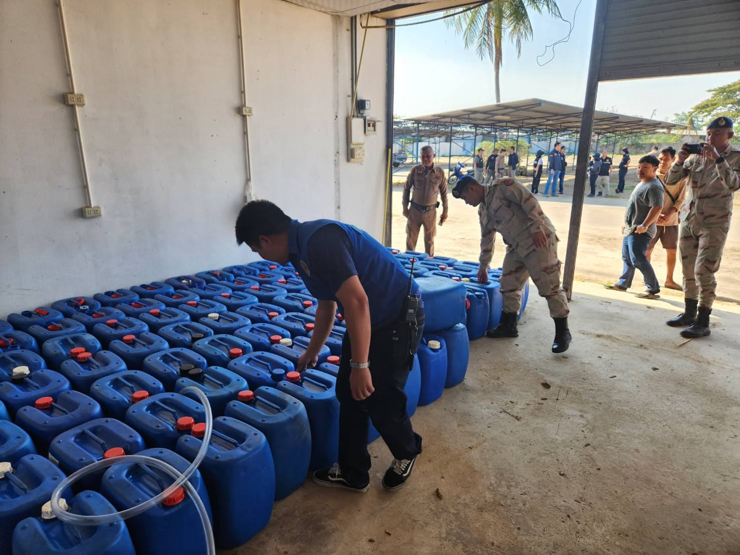 จากการเข้าตรวจสอบ เจ้าหน้าที่ได้แสดงตัวและขอทำการตรวจค้น พบรถบรรทุกน้ำมันเชื้อเพลิง พร้อมน้ำมันดีเซลจำนวน 20,000 ลิตร นอกจากนี้ยังตรวจพบอุปกรณ์และถังน้ำมันในบริเวณโกดังใกล้เคียง ได้แก่ ถังน้ำมันขนาด 4,500 ลิตร จำนวน 2 ถัง (มีน้ำมันคงเหลือประมาณ 300 ลิตร) ถังขนาด 200 ลิตร จำนวน 101 ถัง และถังขนาด 30 ลิตร จำนวน 85 ถัง บริเวณท่าช่องทางธรรมชาติ