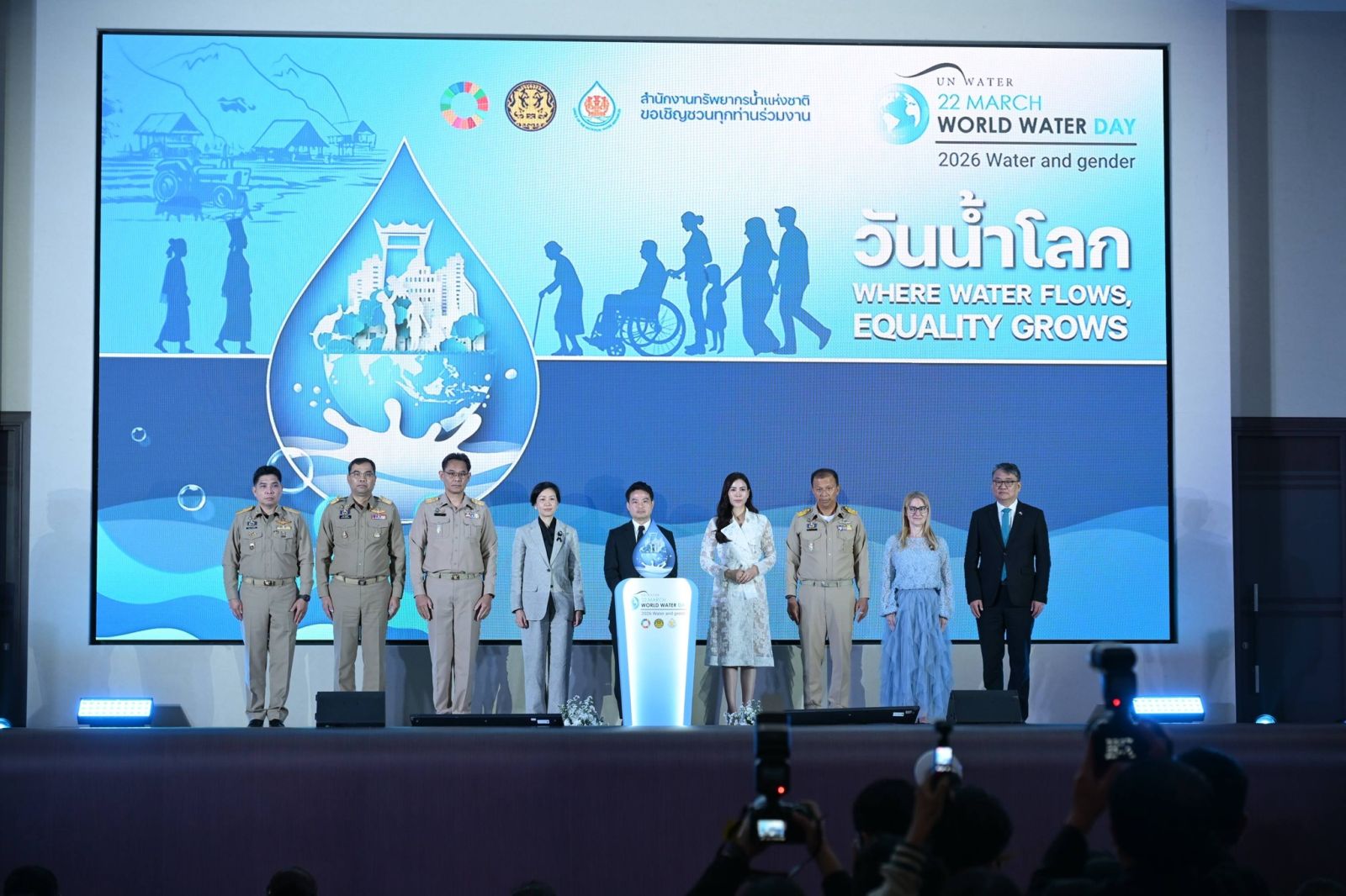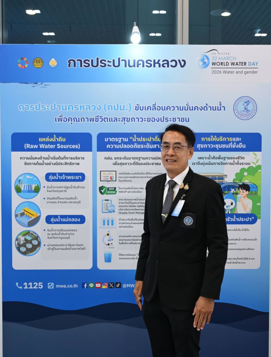 เมื่อวันที่ 23 มีนาคม 2569 เวลา 09.00 น. ณ สำนักงานทรัพยากรน้ำแห่งชาติ (สทนช.) จังหวัดนนทบุรี นายภราดร ปริศนานันทกุล รัฐมนตรีประจำสำนักนายกรัฐมนตรี เป็นประธานในพิธีเปิดงาน “วันน้ำโลก ประจำปี 2569” ภายใต้แนวคิด “Water and Gender: Where Water Flows, Equality Grows” จัดโดย สทนช. เพื่อยกระดับความร่วมมือ รวมพลังสร้างธรรมาภิบาลเพื่อการจัดการทรัพยากรน้ำที่โปร่งใสและการเข้าถึงที่เท่าเทียม โดยมี นายพรศักดิ์ สมรไกรสรกิจ ผู้ช่วยผู้ว่าการ (แหล่งน้ำและคุณภาพน้ำ) รักษาการในตำแหน่ง รองผู้ว่าการ (ผลิตน้ำ) การประปานครหลวง (กปน.) และคณะผู้บริหารหน่วยงานด้านทรัพยากรน้ำและสิ่งแวดล้อมทุกภาคส่วนร่วมในพิธี