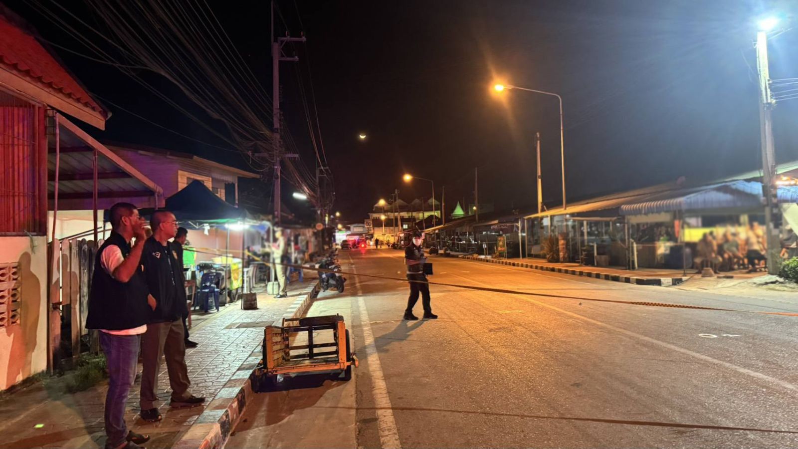 ที่เกิดเหตุบนถนนหน้าตลาดนัดวัดต้นสน พบปลอกกระสุนปืนยังไม่ทราบขนาด จำนวน 14 ปลอก หัวกระสุนปืนไม่ทราบขนาด จำนวน 6 หัว และกองเลือดของผู้เสียชีวิต ส่วนผู้ได้รับบาดเจ็บนั้น รับทราบว่า ถูกดำเนินการนำตัวส่งไปรักษาที่ รพ.บ้านแหลม
