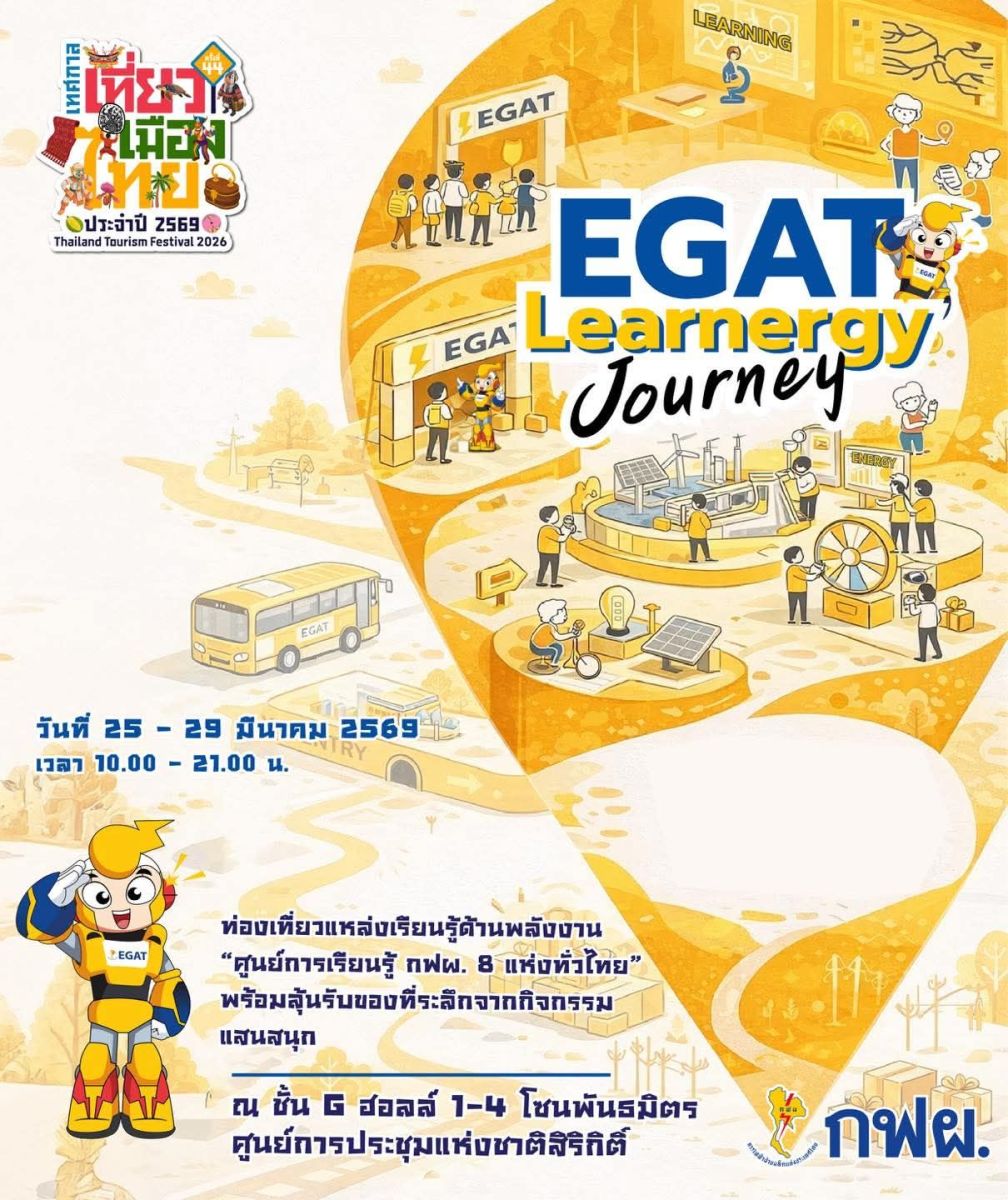 กฟผ. ชวนเยี่ยมชมบูทนิทรรศการ “EGAT Learnergy Journey” ภายในงานเทศกาลเที่ยวเมืองไทย ครั้งที่ 44 ชวนเปิดโลกการท่องเที่ยวให้สนุกแบบมีสาระกับแหล่งท่องเที่ยวและแหล่งเรียนรู้ด้านพลังงาน พบกับ