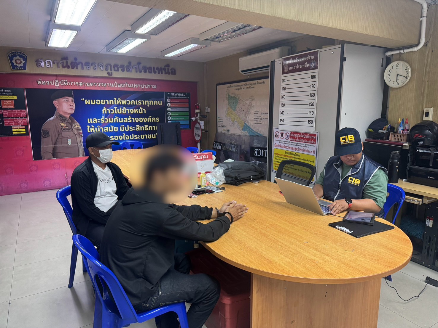 กองบังคับการปราบปราม (บก.ป.) โดย พล.ต.ต.พัฒนศักดิ์ บุบผาสุวรรณ ผบก.ป พร้อมด้วยเจ้าหน้าที่ตำรวจ กก.4 บก.ป. ร่วมกันจับกุม นายริ (นามสมมุติ) อายุ 35 ปี ตามหมายจับศาลจังหวัดนครปฐม ลงวันที่ 16 มีนาคม 2569 ซึ่งต้องหาว่ากระทำความผิด “เปิดหรือยินยอมให้บุคคลอื่นใช้บัญชีเงินฝาก บัตรอิเล็กทรอนิกส์ หรือบัญชีเงินอิเล็กทรอนิกส์ของตน โดยมิได้มีเจตนาใช้เพื่อตนหรือเพื่อกิจการที่ตนเกี่ยวข้อง ทั้งนี้ โดยประการที่รู้หรือควรรู้ว่าจะนำไปใช้ในการกระทำความผิดเกี่ยวกับอาชญากรรมทางเทคโนโลยีหรือความผิดทางอาญาอื่นใด ร่วมกันฉ้อโกงและโดยทุจริตหรือโดยหลอกลวง นำเข้าสู่ระบบคอมพิวเตอร์ ซึ่งข้อมูลคอมพิวเตอร์ที่บิดเบือนหรือปลอมไม่ว่าทั้งหรือแต่บางส่วน หรือข้อมูลคอมพิวเตอร์อันเป็นเท็จโดยประการที่น่าจะเกิดความเสียหายต่อบุคคลใดบุคคลหนึ่ง” จับกุมได้บริเวณริมถนนด่านสำโรง ตำบลสำโรงเหนือ อำเภอเมืองสมุทรปราการ จังหวัดสมุทรปราการ