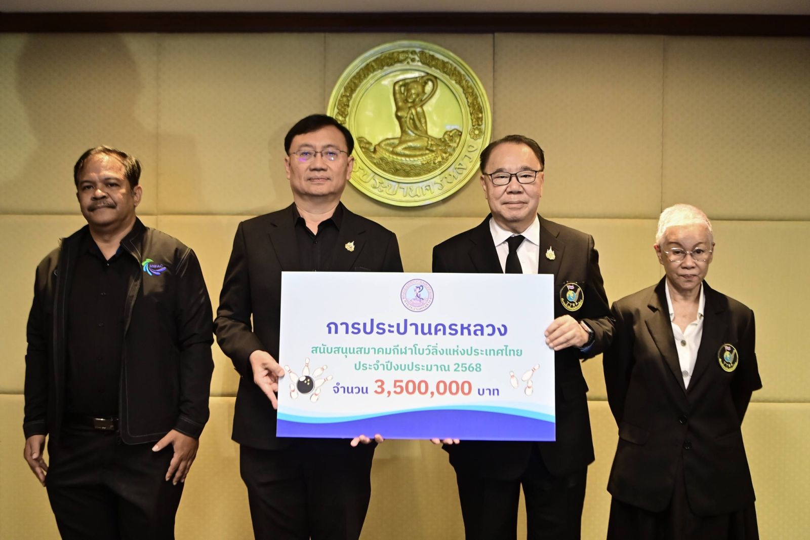 เมื่อวันที่ 24 มีนาคม 2569 เวลา 09.30 น. ณ ห้องปิยราษฎร์ อาคารสุทธิธารากร สำนักงานใหญ่ การประปานครหลวง (กปน.) นายสุเทพ เอื้อปกรณ์ รองผู้ว่าการ (บริการด้านตะวันตก) รักษาการในตำแหน่งรองผู้ว่าการ (บริการด้านตะวันออก) มอบเงินสนับสนุนจำนวน 3.5 ล้านบาท แก่สมาคมกีฬาโบว์ลิ่งแห่งประเทศไทย ภายใต้โครงการ "1 สมาคมกีฬาฯ 1 รัฐวิสาหกิจ พลัส" ต่อยอดการพัฒนาศักยภาพนักทอยแก่นไทยให้ก้าวไกลสู่ระดับสากล โดยมี นายสมพันธ์ จารุมิลินท นายกสมาคมกีฬาโบว์ลิ่งแห่งประเทศไทย เป็นผู้รับมอบ